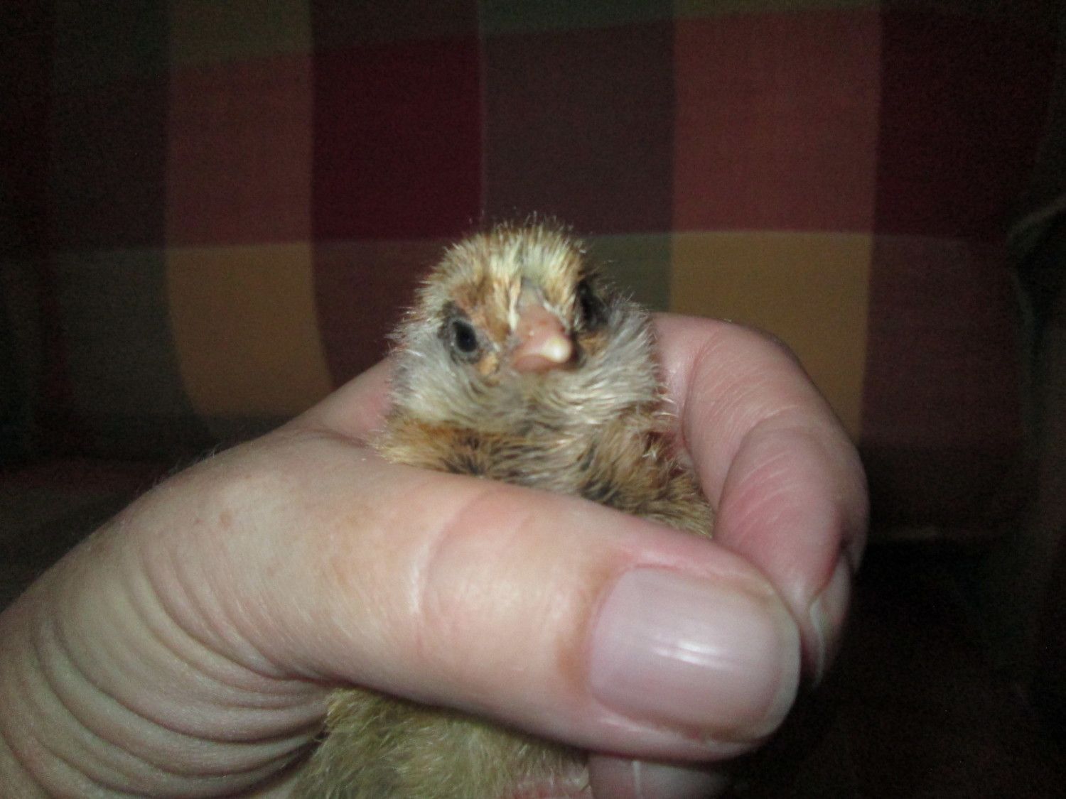 Achieved a life goal today: had to trim the poof on my nine-week-old silkie mix's head so "she" could see. (Actually, my sweet husband trimmed and I held). I've always wanted a chicken with a poofy poof. Here she is pre-trim: