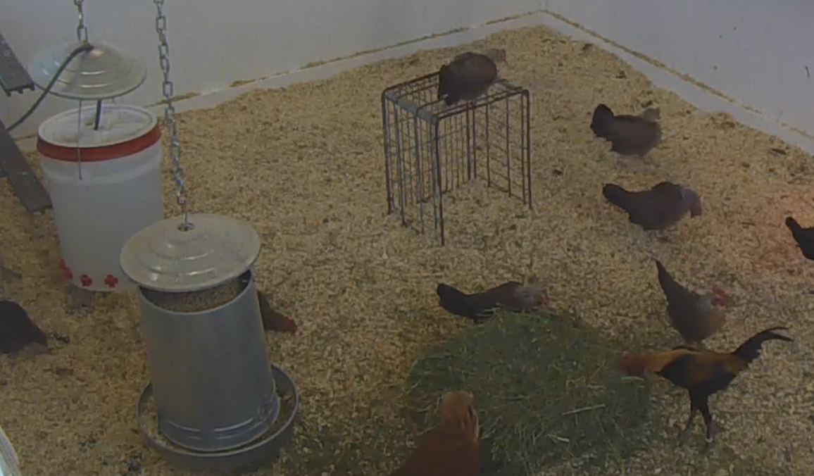 Last winter was so mild that I never got around to trying out hay for the birds, I got a bale over the weekend at IFA and this A.M. put a flake in each coop. It seemed to be a hit, but I am sure that it will take a few days to see for sure how this green winter treat will pan out. As something both new and green it sure got a lot of attention, I suppose it will deepen the yolk color some, if nothing else, it will lessen the boredom of long winter days and nights.