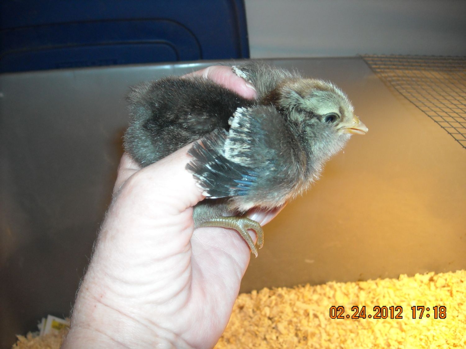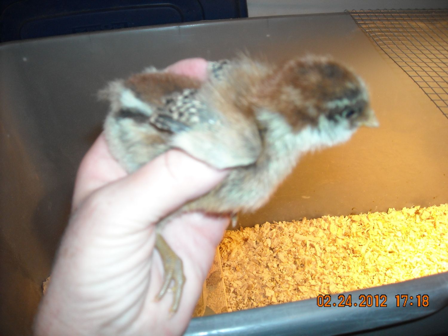 Sold the rest of the Australorp. I have one EE that I kept out of that puffy cheeked hatched, tiger face. :) Think it's a girl. I want a dark one that's a girl, I will have to keep a couple of possibles this time around. They are so darn cute. Boy, I'm going to have a lot of colored eggs this year.