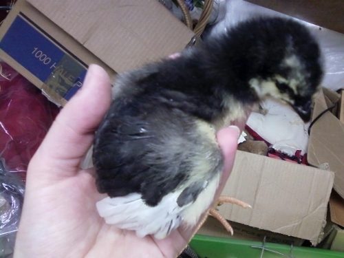 Hey Lisa, I am still so in love with these babies I got from you. Angel has been doing this thing the last couple of days where if I put my hand in the brooder, she will come over and step up into my palm. I can still see a little remnant of the umbilical cord on both her and her sister, and it is so stinking cute. The older girl tends to be more of a drama queen about being picked up, but tonight when I was moving her around, I found the 'off' button. I just started rubbing my thumb lightly on part of her collarbone, and she settled right down, tucked her head in, and shut her eyes. Even when I'm cleaning up after them, I enjoy having chickens around so much.