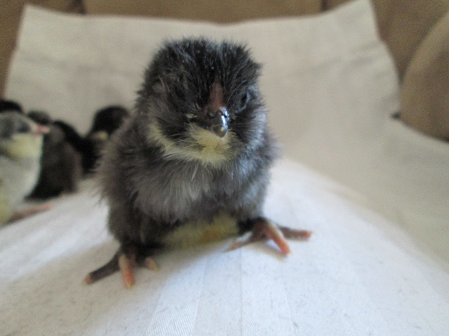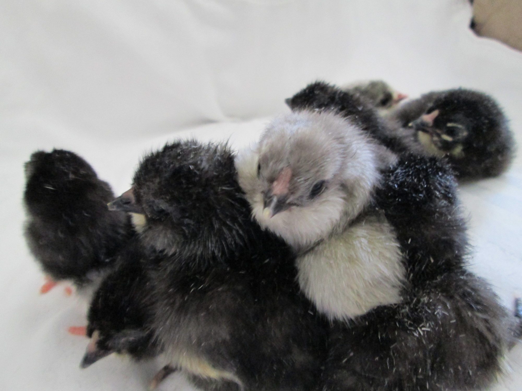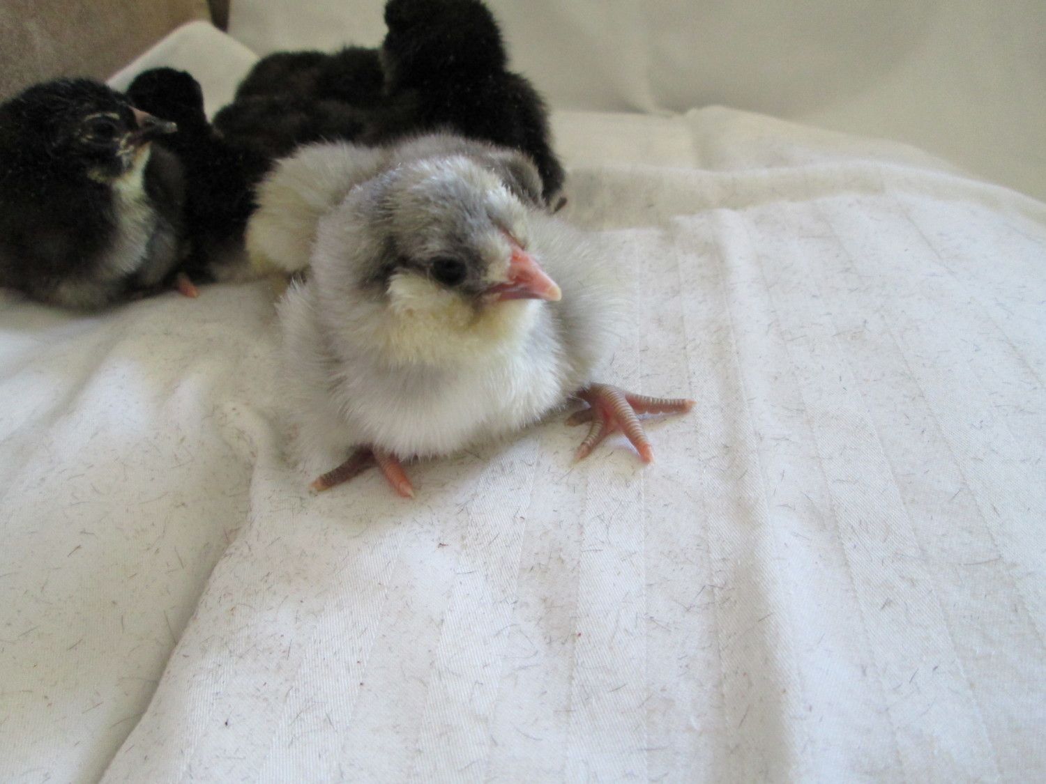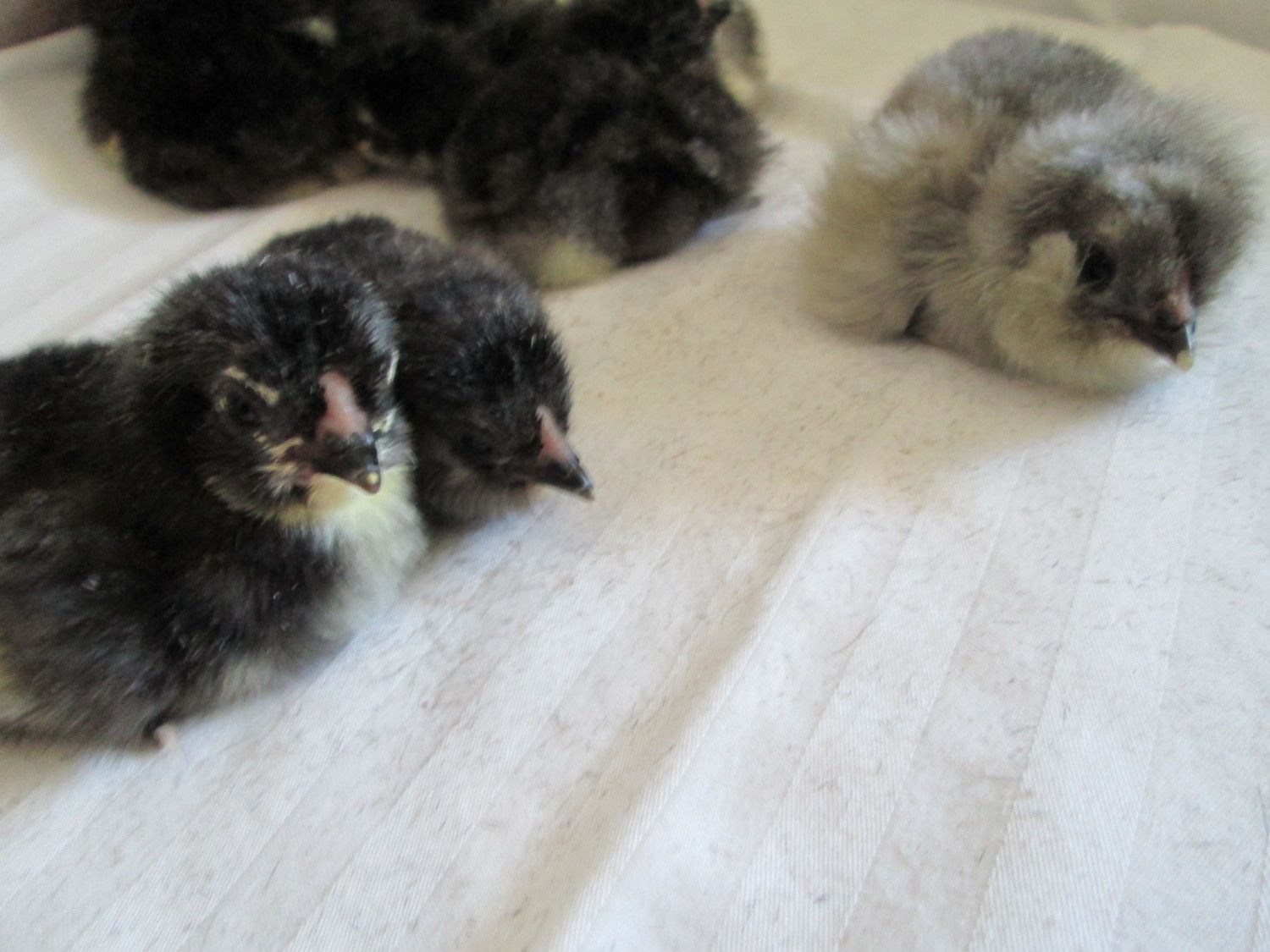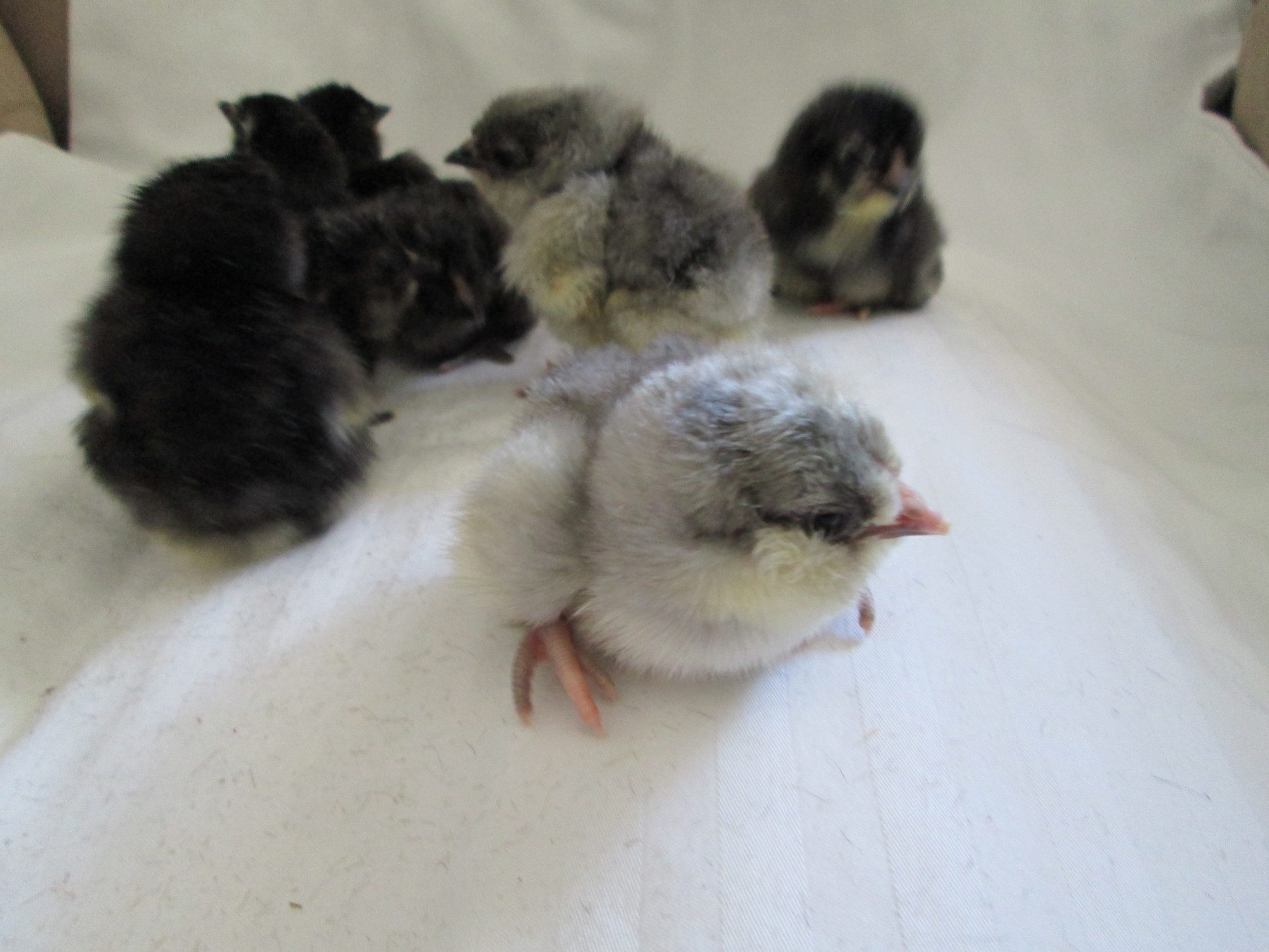 Cynthia-why is it your chicks always look so stinking adorable? So you did not get much blue here for your guy.....the fifth pic down, all dark no light, is that one blue? or black? They are all perfect.