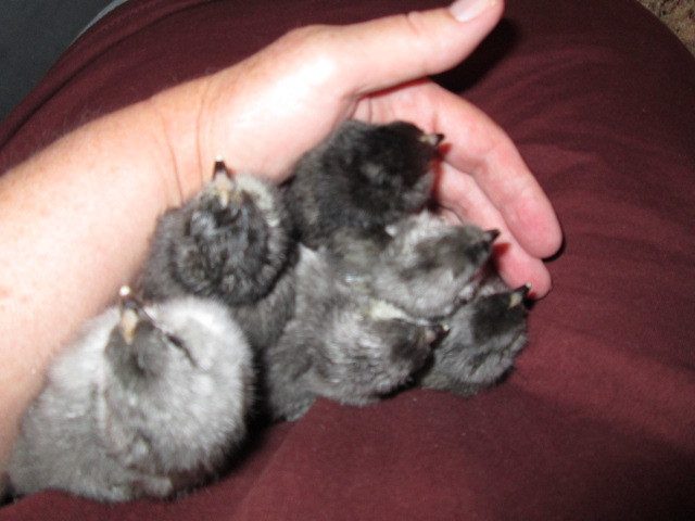 Ok, you all have made me very happy..along with more votes on the girl look when I put it on the gender thread too. I think it a beautiful bird. Lisa, if your black girls look like that, they are pretty! Lisa, those are darling babies. What breed are they again? I'm too tired to go back and check. I'm waiting up for our son to get home. Prom night.