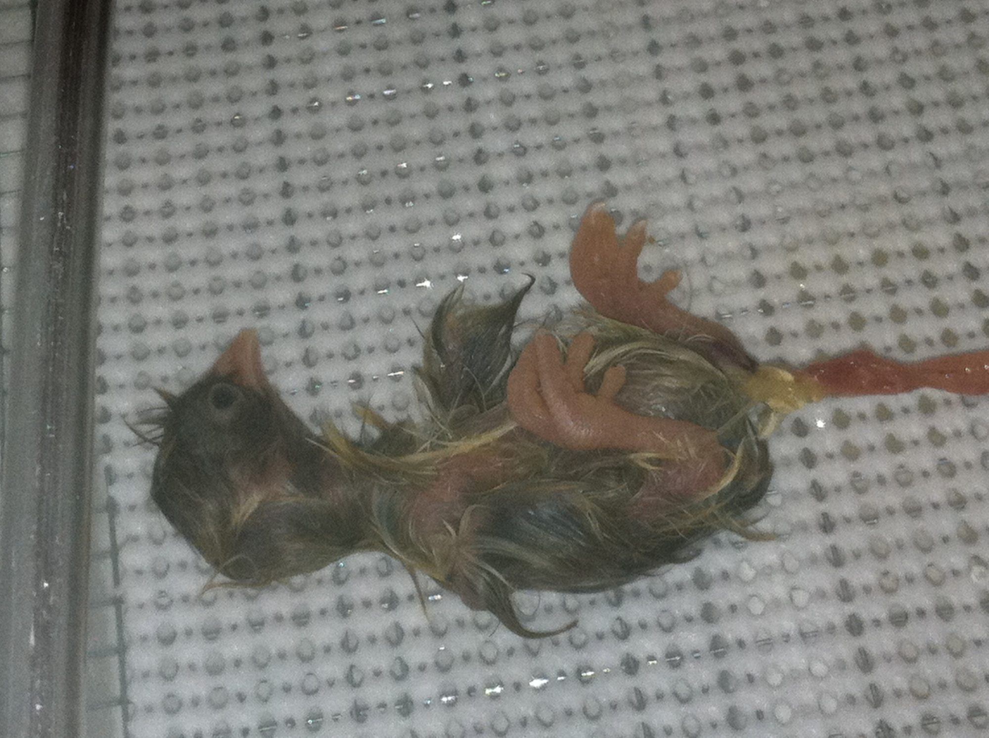 He really is teeny! Oh, so cute! His cord came off, so that's good. I sure hope all the rest of the babies pip and hatch tomorrow, but I know that's probably a long shot. Would it be too much to ask for even a few?