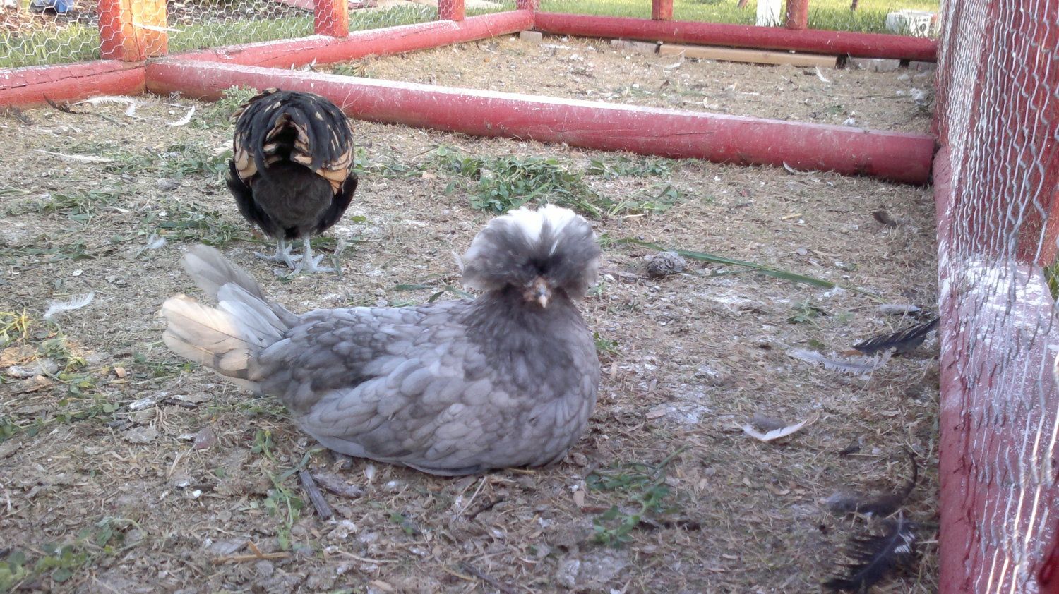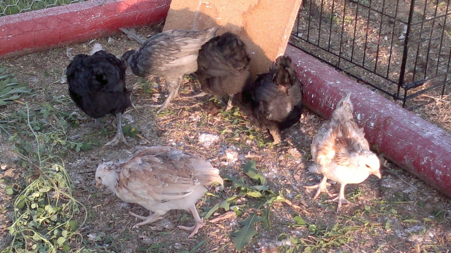 Kinda blurry, did not have my camera. Notice all the feathers laying around? That is why Shirlee will be on KSL this week GrrrrrOk sitting her staring at the webcam.. Have too much time on my hands. Here is something to look at while we wait patiently for these chicks to hatch lol! So in another window, I will post pics of my new little coop, "La Casita". The front door is still not cut out, the white letters are not up.....but you can see how fun it is. It is a bit of a mess still but between this and the playhouse we are working on getting it all put back together ! Oh and for fun I have a pic of my 6 youngsters---the 2 wheatens from qcu, 2 black and 1 blue AM from Cynthia dear, and the Marans we got at chickenstock from Birdguy. Then there are a few pics of my polish because they kept sticking their heads out at my phone like they wanted picturesKinda blurry, did not have my camera. Notice all the feathers laying around? That is why Shirlee will be on KSL this week Grrrrr![]()