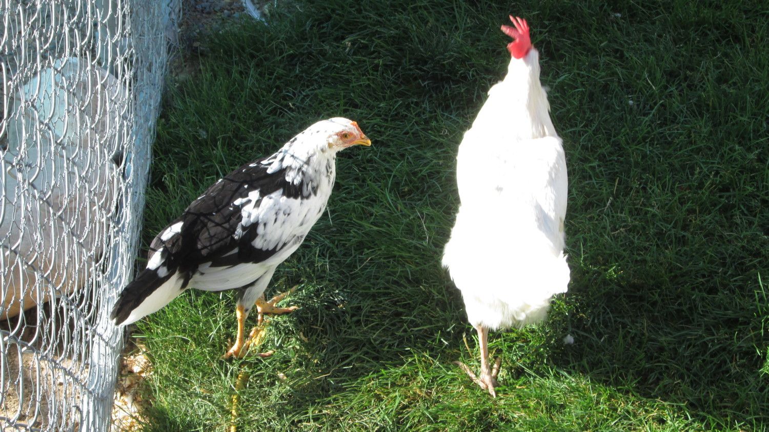 Here she is next to Miss Piggy, you can see how small the white leghorn is, she lays