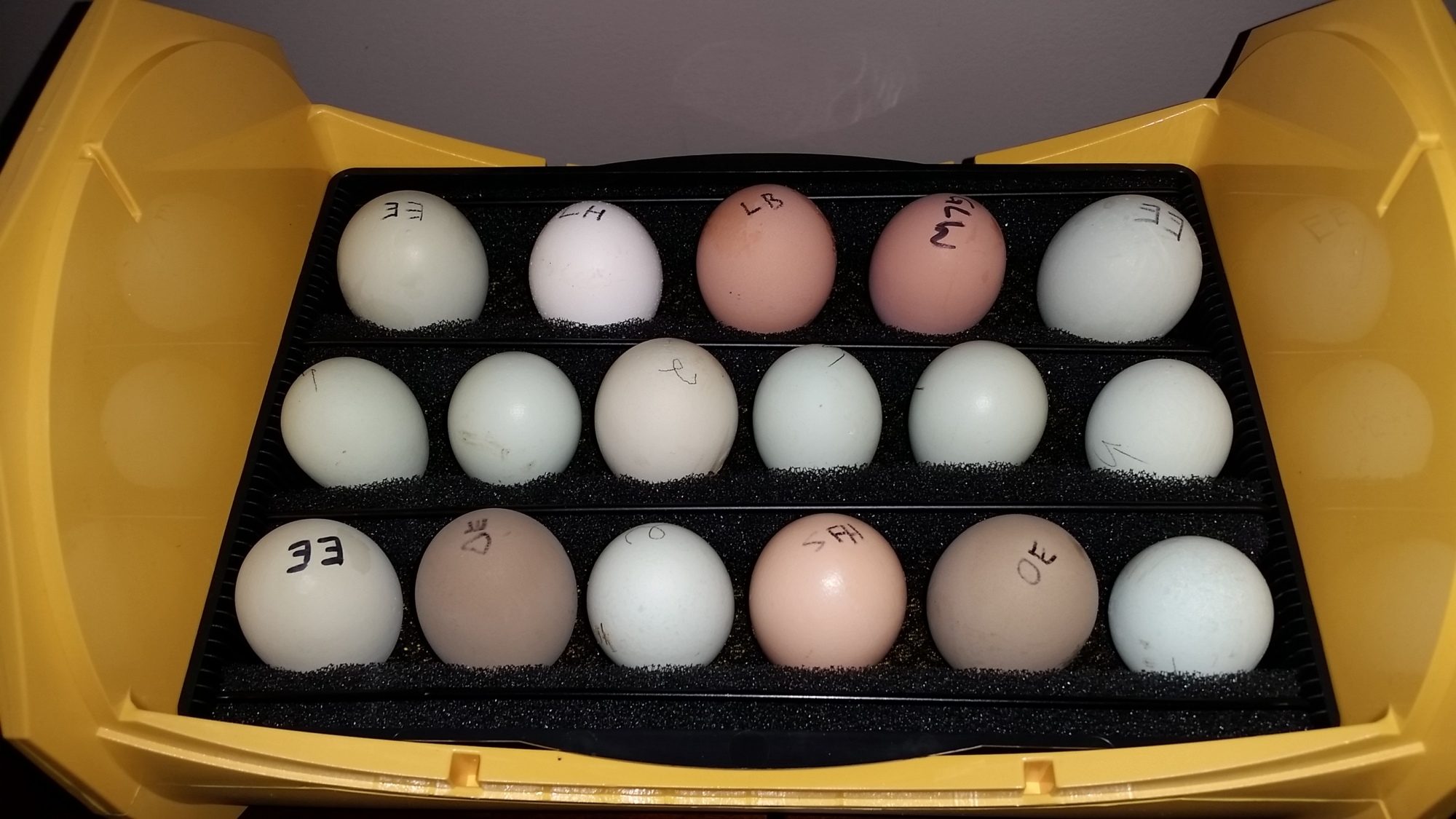 Left them all “as is” (no washing), got em weighed, and set 17 eggs in my bator as of 12:30 this afternoon.