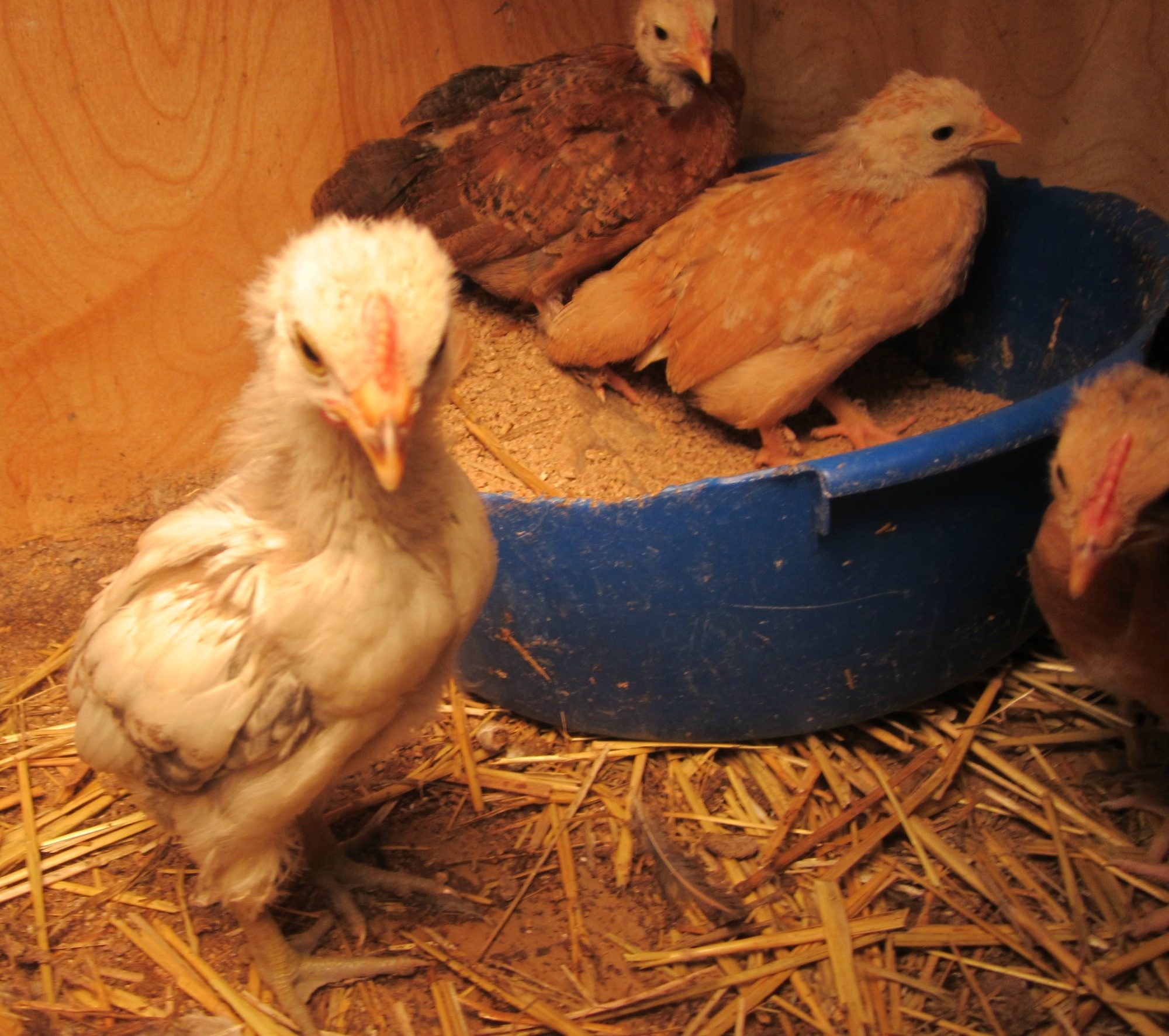 I didn't realize i was set to participate in this thread or I would have jumped on board sooner. Here is my Dark Cornish surrogate. She unhappily allowed me to get pics of the 3 Pakistani Asil chicks shes brooding.3 out of 14 eggs, but 9 eggs never started. I'm still happy and impressed with the results since she has an unheated crate and still managed to hatch some eggs in NE pa this time of year.