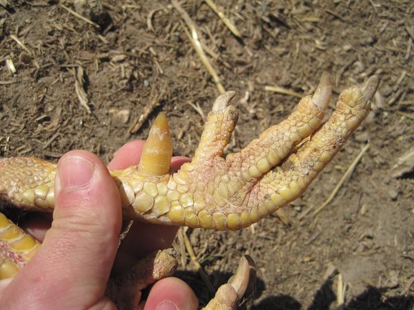 Again, I think it is important to note just how straight those weapons are going to be on cuda's young male. What is also noticeable is the 'square-ish' shanks on this bird. This is a very desirable trait.