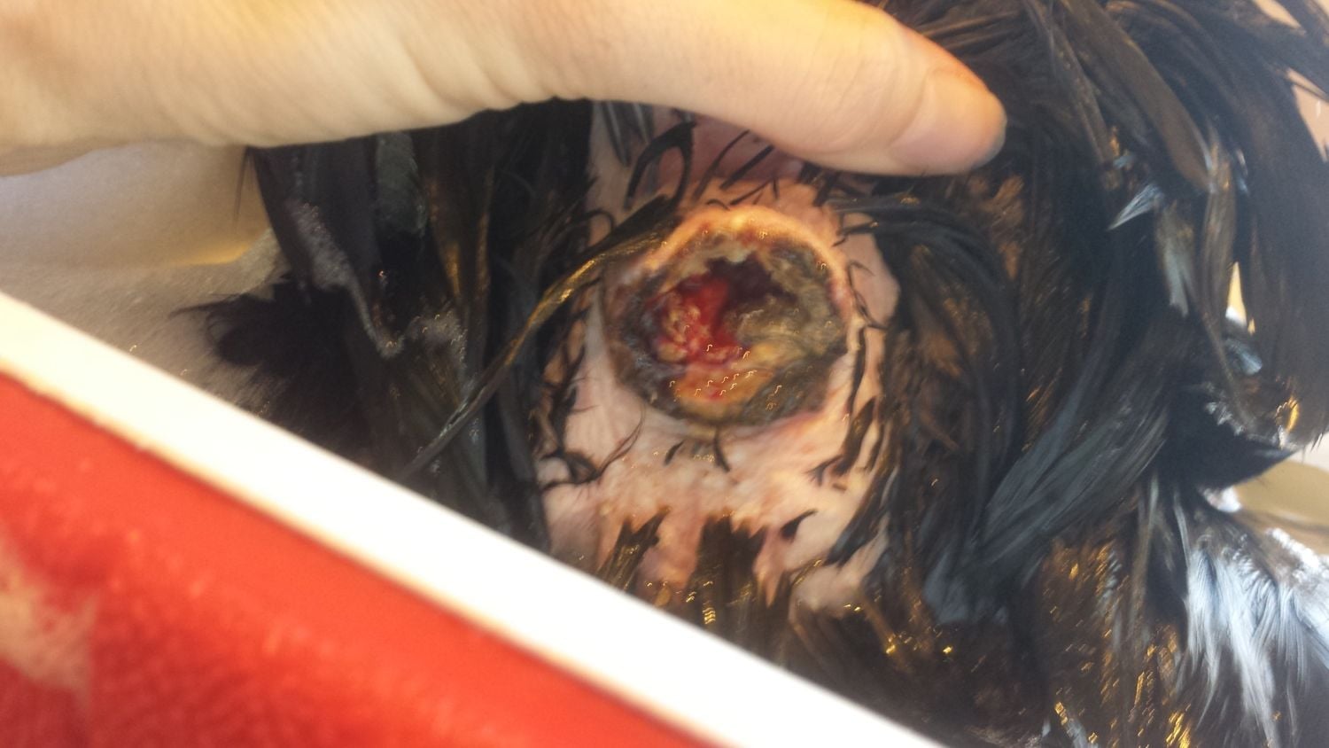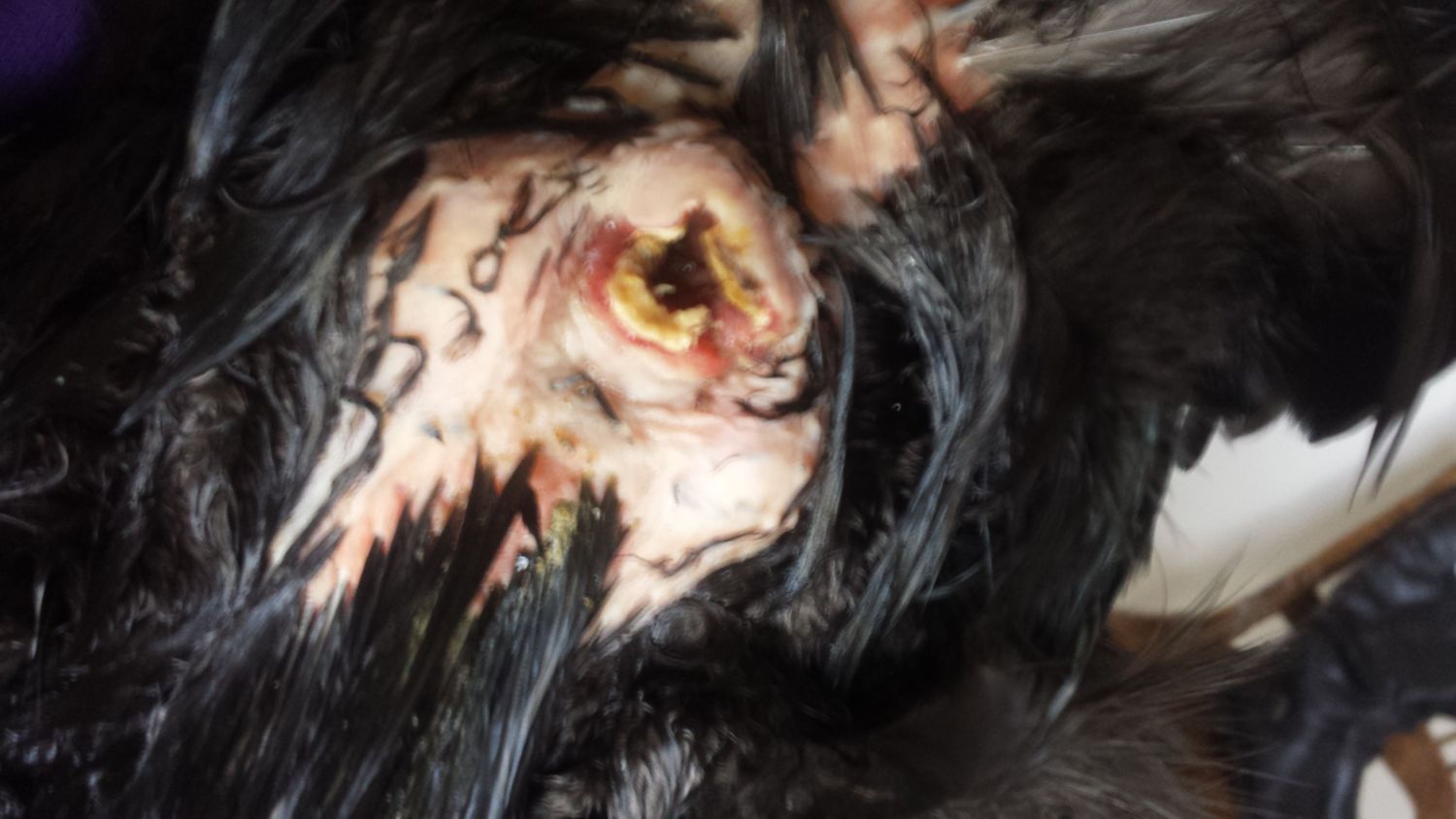 Thanks, here's another photo that I took today during her bath. I tried to scrub off more, but man, she looks so raw! I soaked her in soapy water and have put molasses in her drinking water. I also slapped some monistat on her vent, figured it couldn't hurt. Then gave her a mash with chicken feed, yogurt, wheat germ and probiotic powder in it.