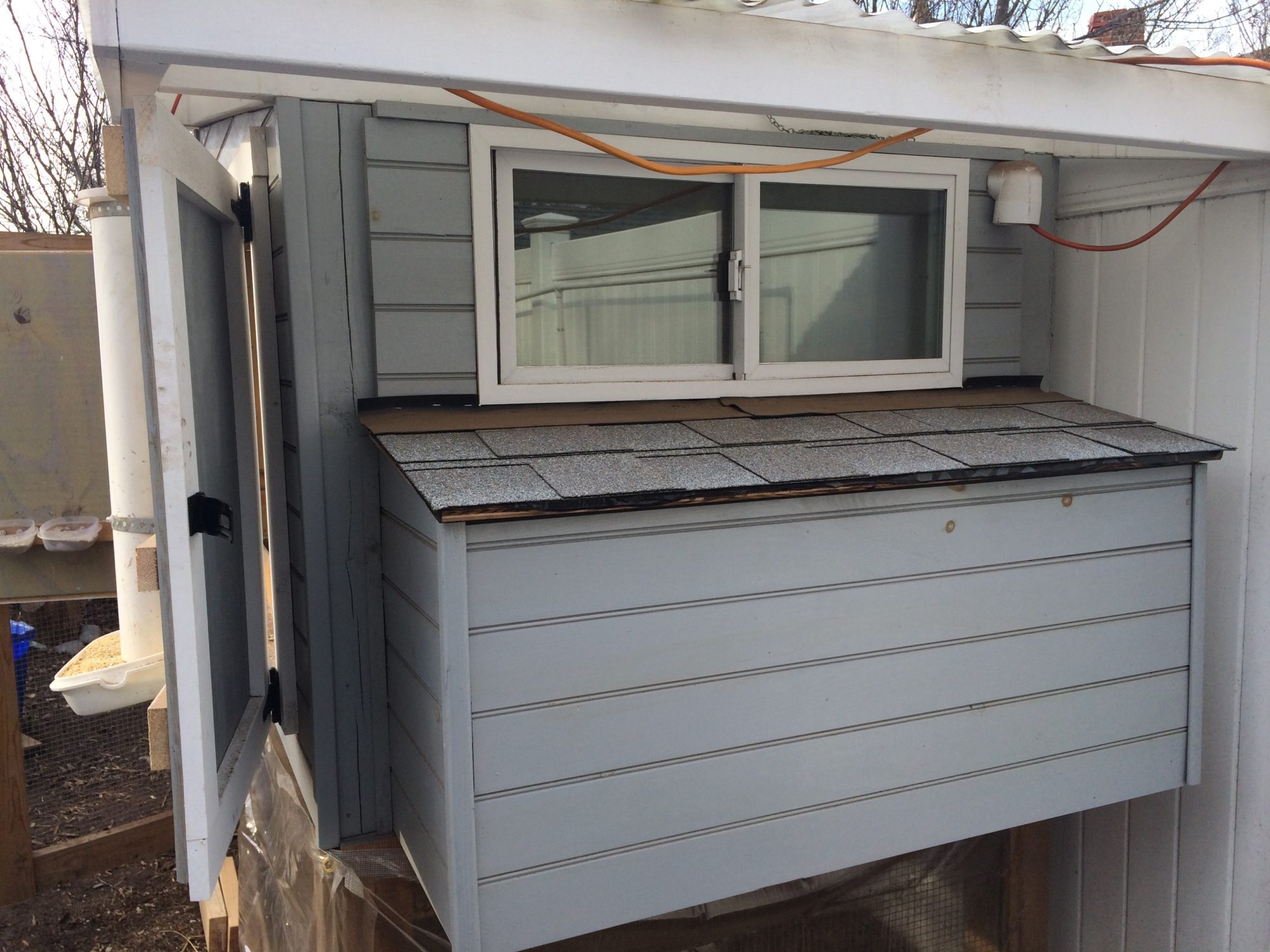 Being a first time chicken owner, winter care really scared me! To heat or not to heat was a big struggle for me! I do run electricity out to the coop but the supplemental lighting is a cool LED bulb and double secured in place. The fear of fire led me to trust the advice given here and use no heat lamp... so ventilation vs drafts became the issue to solve. Our coop is about a 4'x5' box which typically places roosts at the same level as windows. Here are a couple pictures showing my only 2 windows for venting: