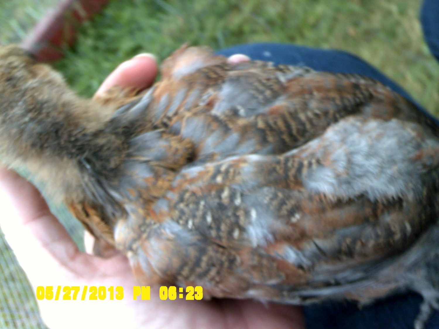 A couple of folks on the EE threads had said that Benzo was male because of the patchy red. I'm with you, till she proves she's a he, I'm going to keep calling her 'her'. If not - well, I'm going to need a replacement for Hurra anyway.