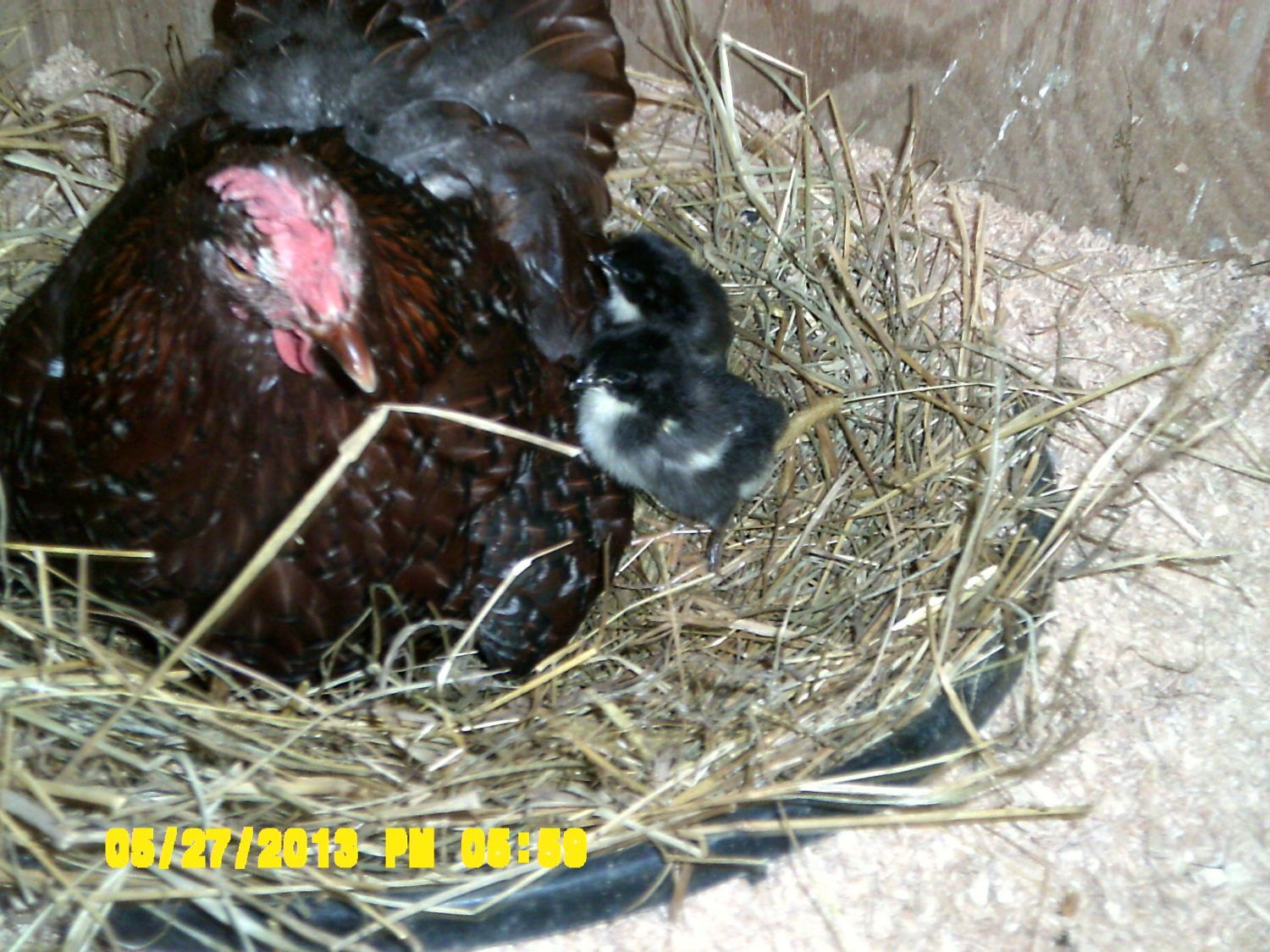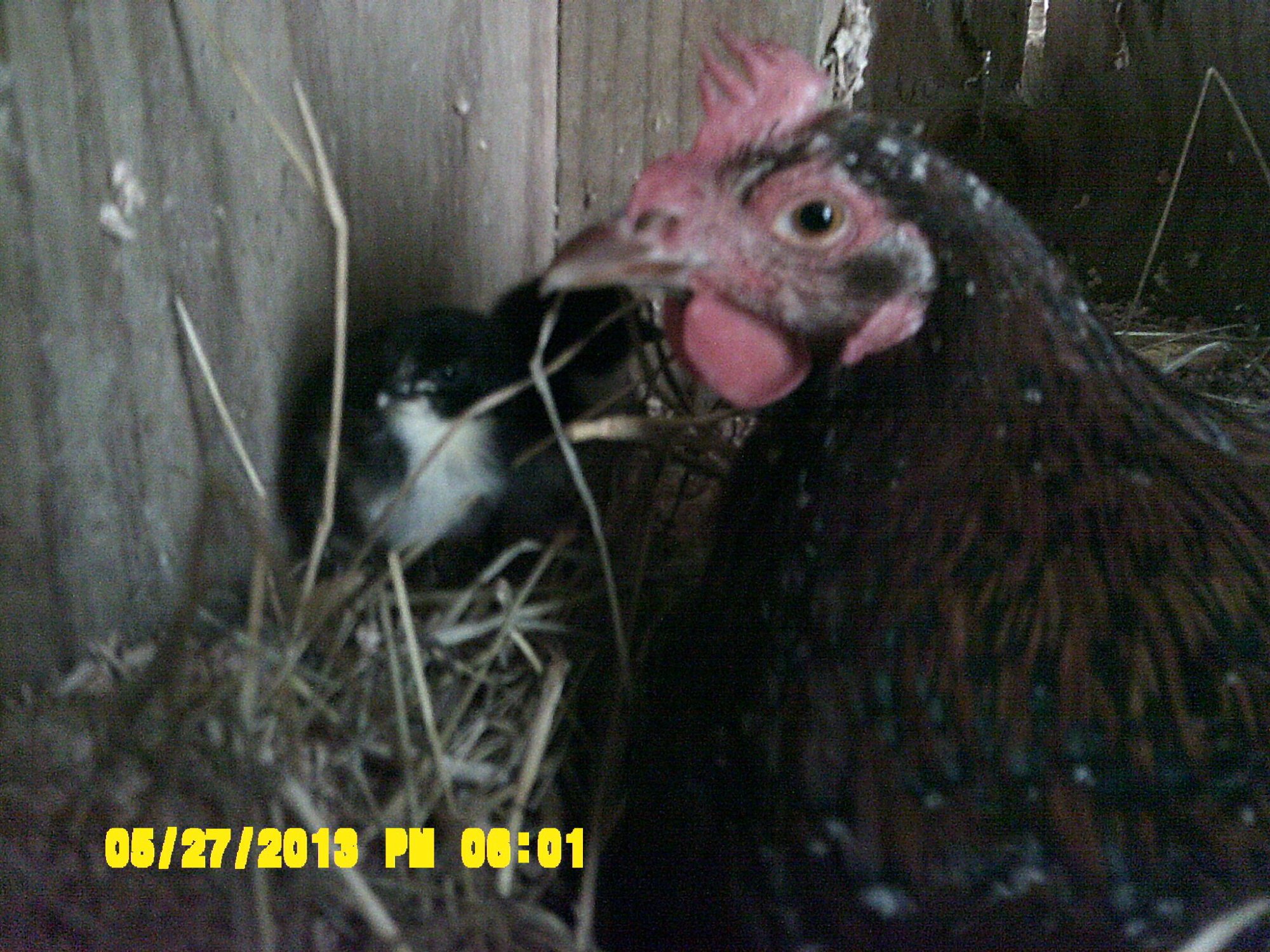 Carmen, the eggs that I let them incubate were (I think) only from the australorp/jersey giant hens and from Candy the EE. The 3rd chick that hatched yesterday has feathered legs! How cool if she turns out to be big and shiny black with fluffy feet! The 2 chicks that didn't make it were marked exactly the same way so I'm excited to see if the last ones turn out to be little clones too.