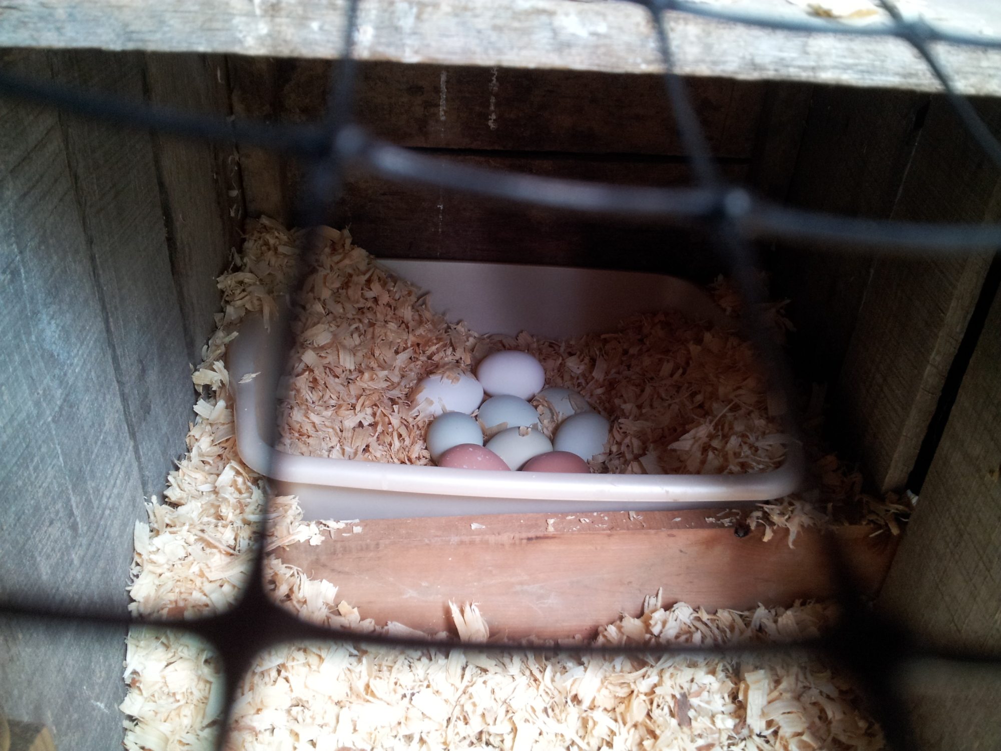 Well, after watching my white EE sit on wooden eggs for a week with only a daily break for food water and dust bath, I gave her some eggs to try to hatch. I slapped together this little "efficiency apartment" for her. Pics are before food, water, or hen were added. We shall see if this actually works out. She is one of my first chickens, born last August. Totally did not expect this. I set 6 EE, 2 NH, and 2 Brown or White leghorn eggs all mixed with my SLW roo. Fertility is unknown, her skill as a momma is unknown. All a little leap of faith. So, that said, let me show just how green I am in all this. I set the eggs yesterday afternoon. When do I start counting days? Yesterday? Or today?