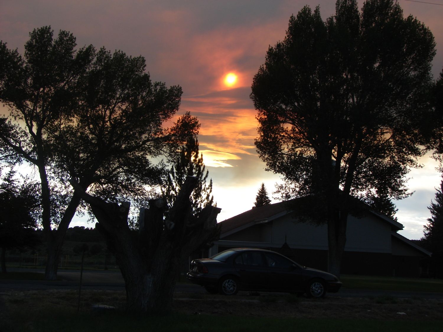 Finally they got the wildfire 100% contained. Here are some pics taken the first few days when the smoke was the worst. It started on the 1st and the pics begin with the evening of the 1st from our side yard.