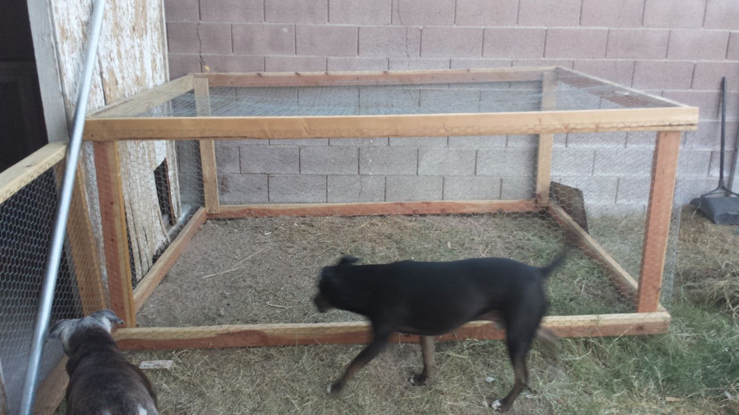 We built this run for them as a temp situation to keep them safe from the dogs but still give some strutting room.