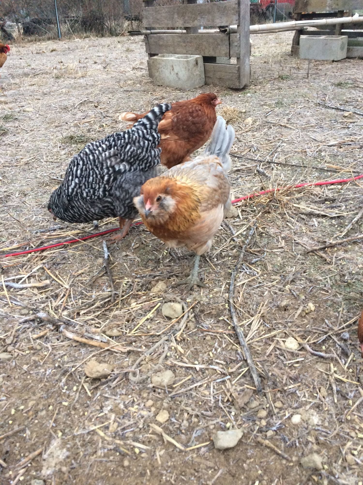 Also, we have over 10 chickens of each bread. So those photos are not the exact chicken I believe it making the noise.