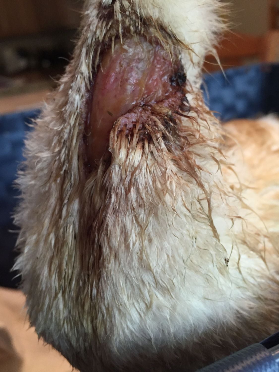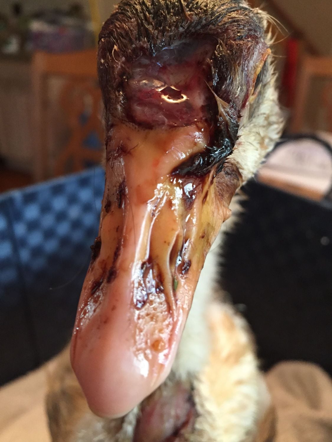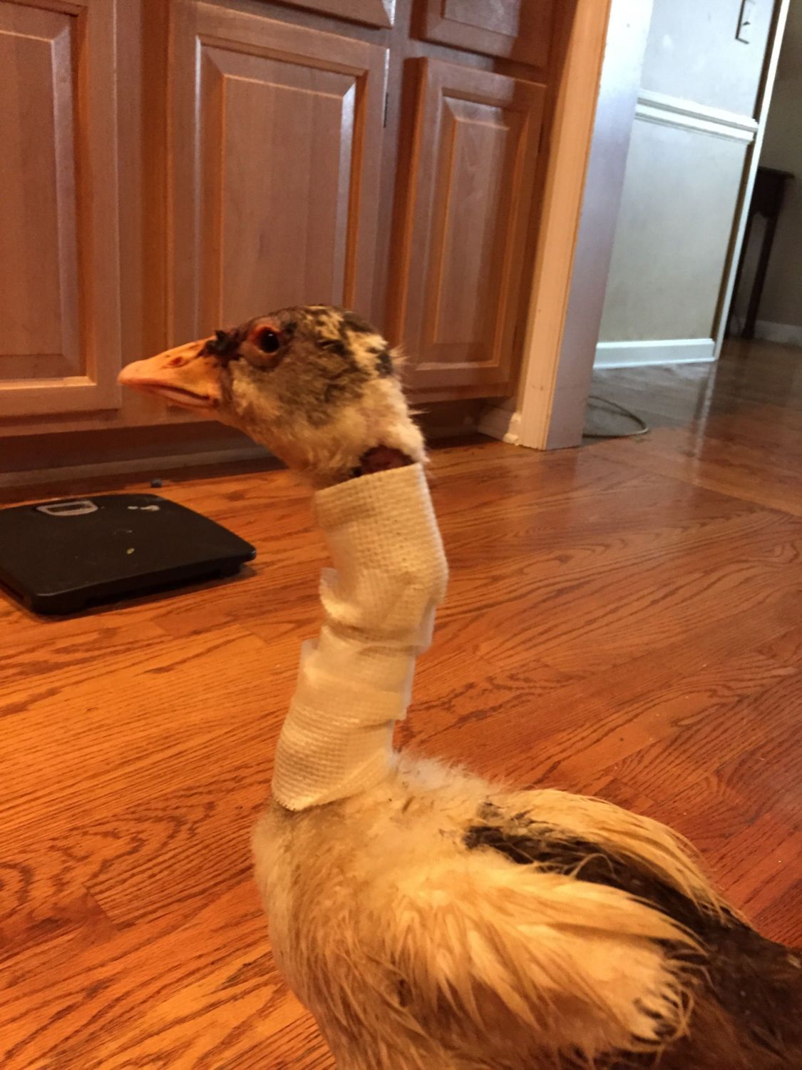 I came home today, my blind goose was dead with all the skin ripped off her head and neck, and my big gray Pom male had three patches of skin missing. I didn't want to have to kill the vultures, but it's time.