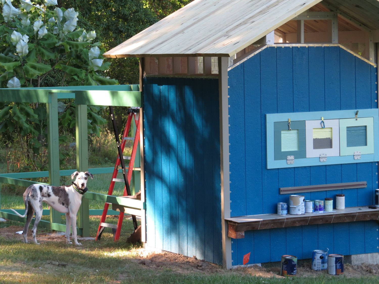 Oops, I'd better go latch up that right nest box! I unlatched it to paint it 1/2 hour ago, and just realized it's still unlatched!