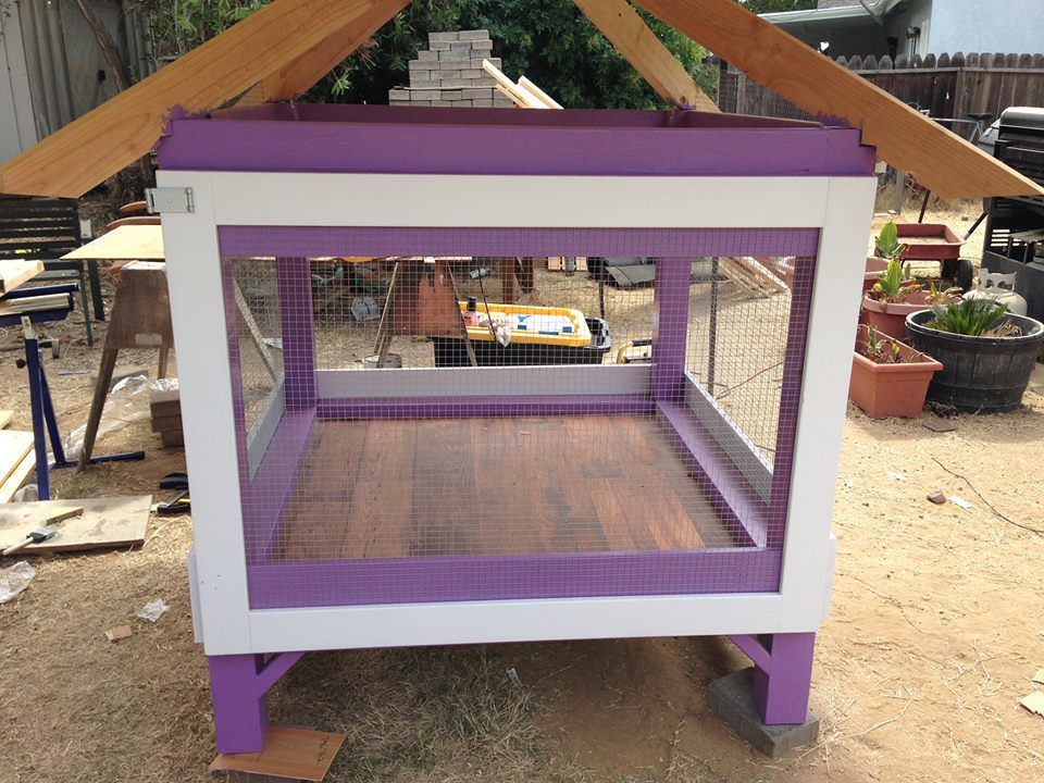 If you have designed a coop that has a lot of contrasting pretty (and functional) trim painting it will quadruple your time. If you combine it with an open coop or run where wire is involved you will have to prepaint it and it will need three coats and they will take forever. They will also chip if you don't baby it for the first week or so while it cures so if a child of yours or husband walks past it suddenly there will be a chip out of the paint and you know the chickens will peck at that chip until the end of time.