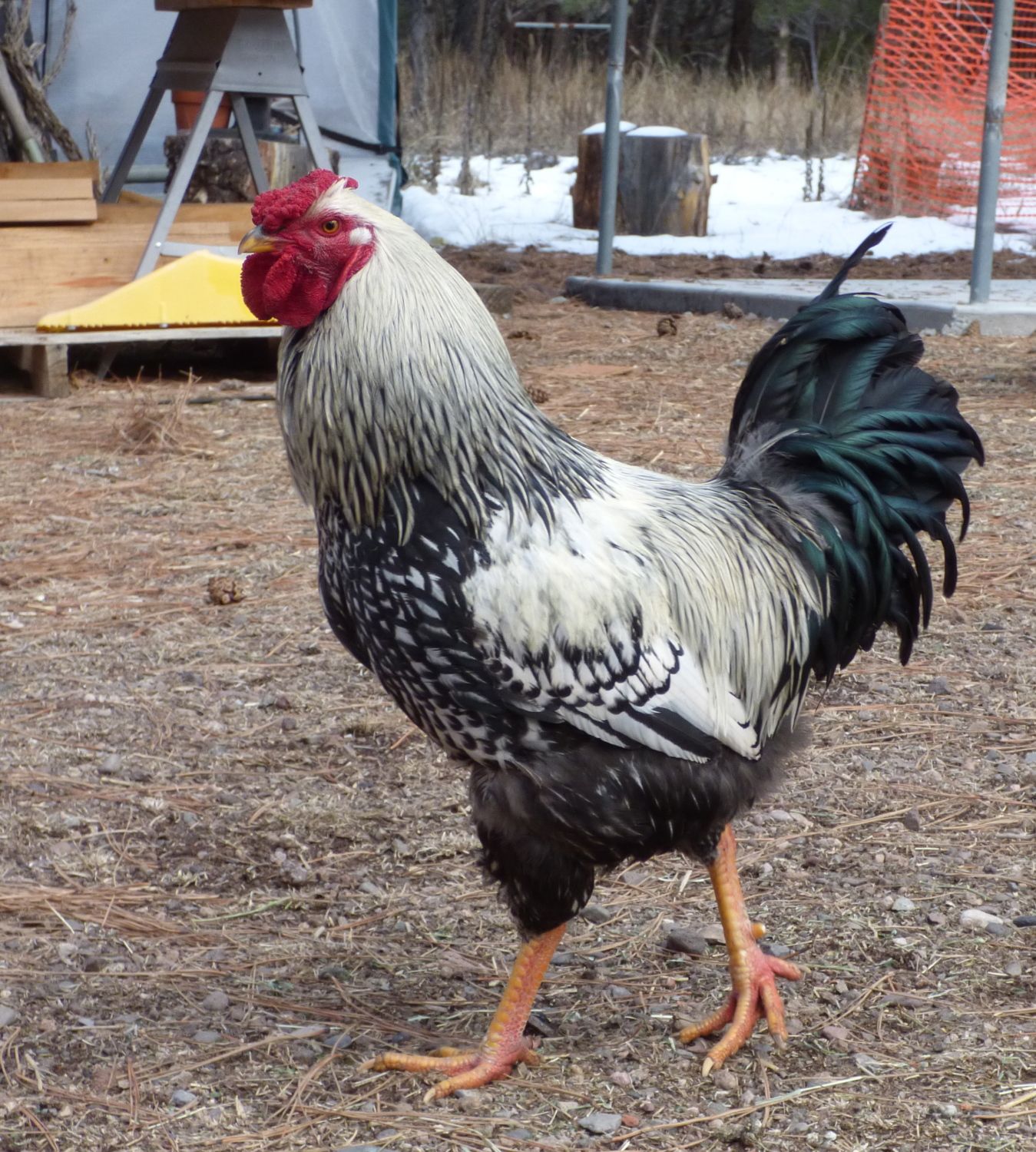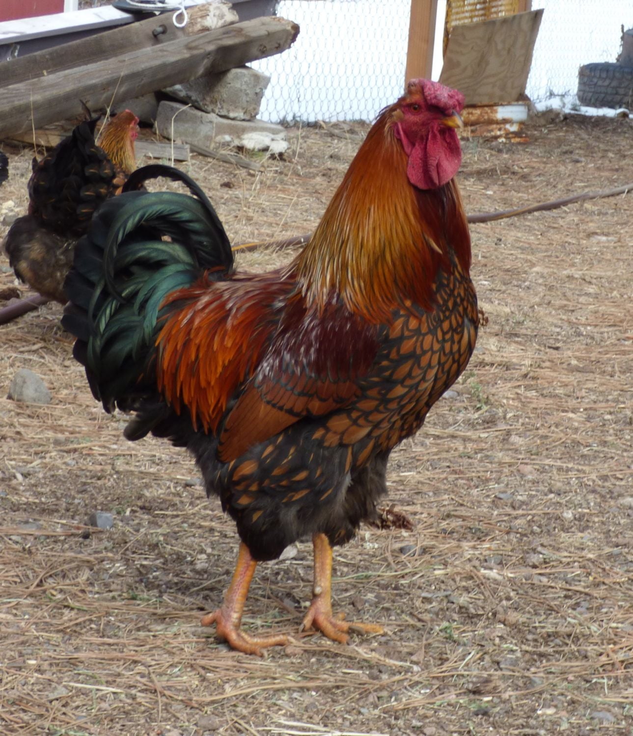 I have a mixed flock of gold and silver wyandottes - 9 pullets (6 gold and 3 silver) and 2 roos (1 each color), they turn 8 months old tomorrow. I know it needs to be 1 roo to the 9 females but I'm not sure the best way to decide. They all came together from Mcmurray hatchery as day old chicks so they all grew up together. It was a straight run and we put 9 cockerels in the freezer - that was hard enough! And we were hoping hoping we could keep one gold and one silver roo for the hens. They get along, don't fight but they are already making me get saddles for a few hens, and it's not even springtime yet. How do you guys decide? Both roos (cockerels I know is correct term, but for short roo, ok?) are easy going. Leo the GLW was alpha for the most part, but got a bit of frost bite on his comb and began to retreat from duties. He is fine, his comb is fine just damaged, but when he was concerned about his "headache", Big Blue Roo began very gently taking the girls. Now in 30 days time, the young ladies follow Blue around and Leo always hangs back. Blue is huge, I love his size and we are breeding for meat & eggs - don't care about purebreds for selling or show. Leo is wide between the legs, way more than Blue and I hear that is good for future hens - less egg-bound problems. And Leo is stunning with his long "mane" he really looks like a lion. These are free range all day & locked up at night. Neither roo seems really on top of protecting the flock, but maybe 8 months is too young? The free chick from McM. was an Egyptian Fayoumis and wrote the book on flock protection, but he died unexpectedly.The biggest problem is that I'm liking Blue the best and my partner in crime likes Leo the best.... My last hope is that someone tells me they will get gentler to the females after they get over their teenage rage, but I'm pretty committed now that one of the two needs to go. :-( Help!