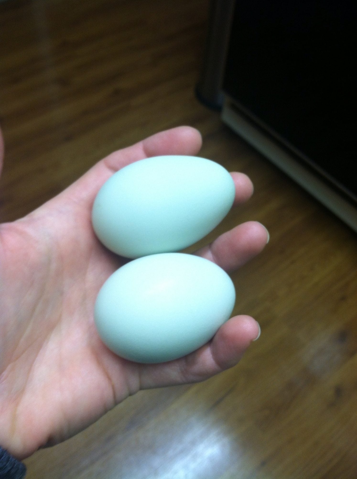 Well no offense FWJ but EE's are not predictable on egg color. They can be nice blue like yours or green, brown, pink even a rare lav. SO If one wants colored eggs EE are great> But if one wants a certain color say blue. They need to buy a BQ of the breed.