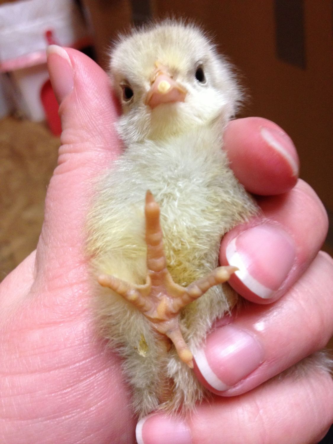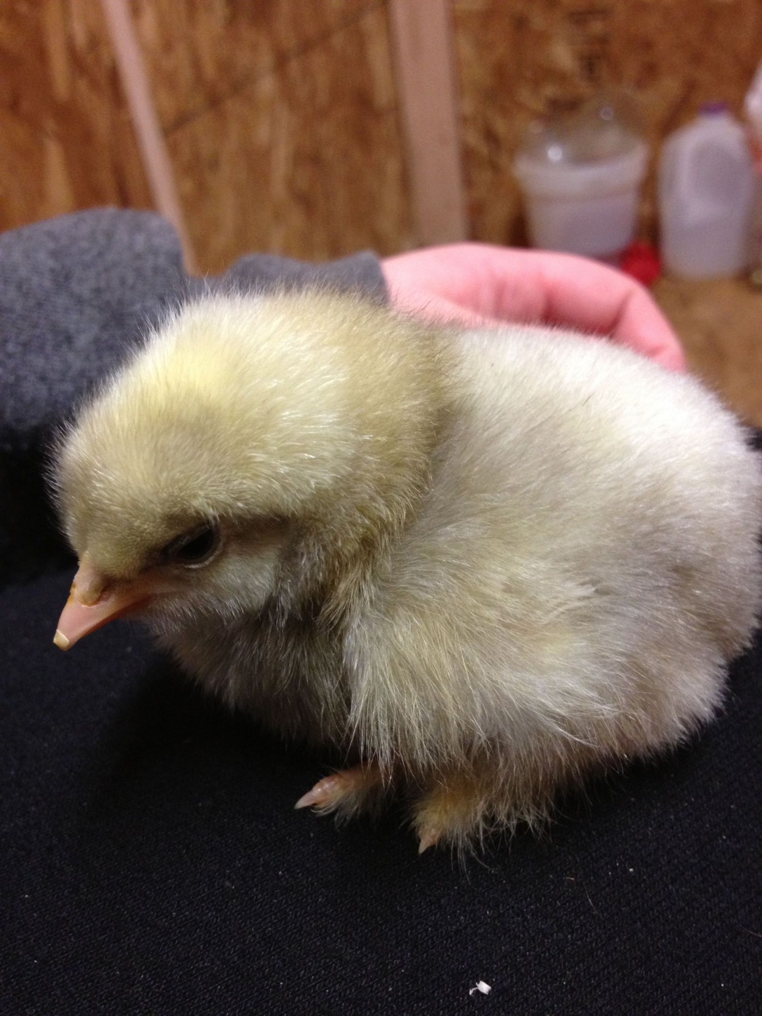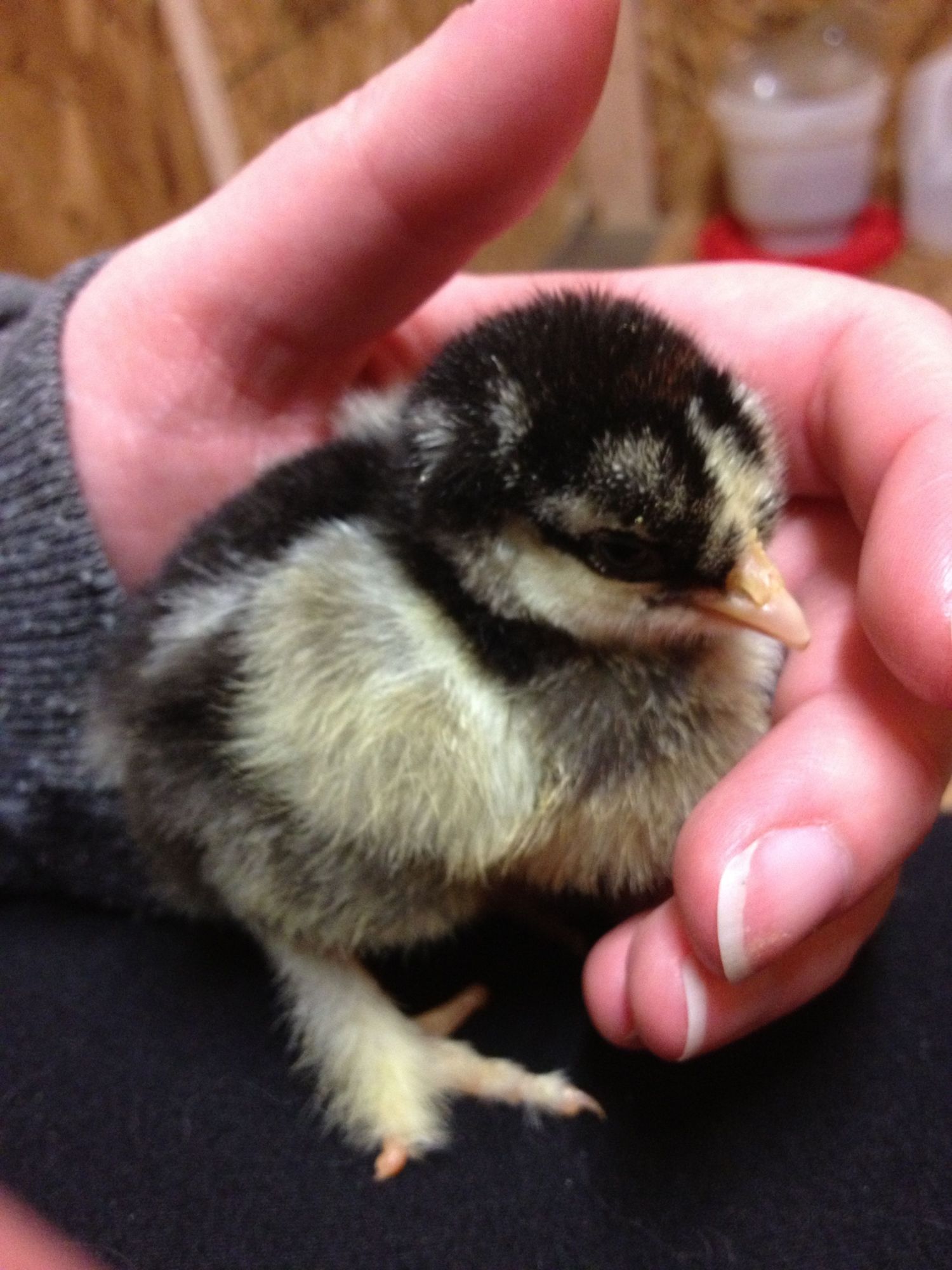 They are day old I'm guessing? But the EEs have a few tiny wing feathers, so I'm really not sure. I hate mobile BYC, I search something and get a bunch of unrelated posts. I dipped thee beaks in their water (which btw, in any of you have ideas about a home-made waterer I would gladly hear them) I have some awesome glass apple jugs, but the hole is so small (twist top bottle almost), it's hard to find anything it would fit into.