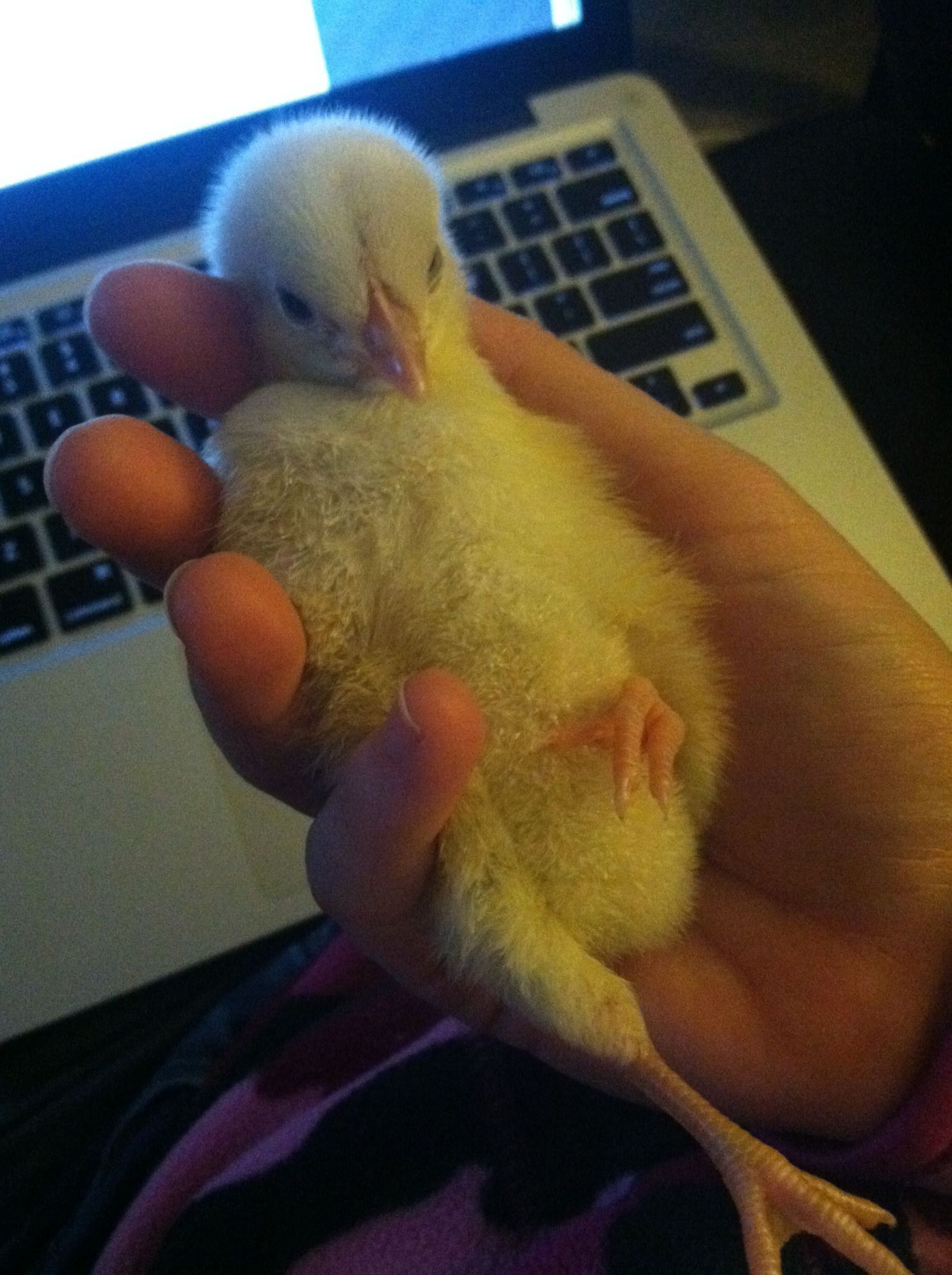 This feisty girl won't stop peeping crazy loud! Finally took her out to hold and she is all relaxed...any more relaxed and shed be dead!