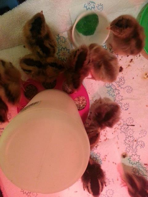 These cornballs have grown 2X as fast as usual...and we have decided it has to be the fact that the heat lamp illuminates the pen, and the cornballs eat & drink all night (in between naps) instead of sleeping all night as they did in the tractor or coop.