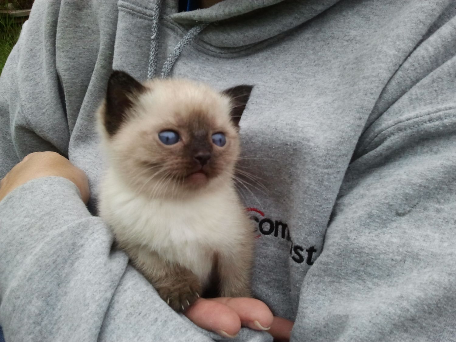 This is Luna at 7 weeks. She was the runt of the litter and about the size of a 5 week old kitten.