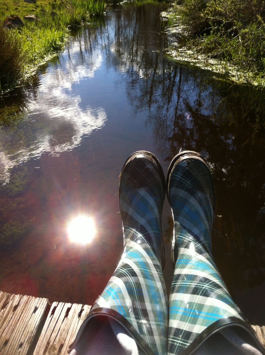 Quote: By all means! I am honored that you think it is that good. I just liked the way the sun was reflecting on the water. Though it does put quite the glare on the eyes. Those are clouds on the left, by the bank. I really just wanted a pic of my new boots, but when I sat there, it was a perfect pic to me. LOL.