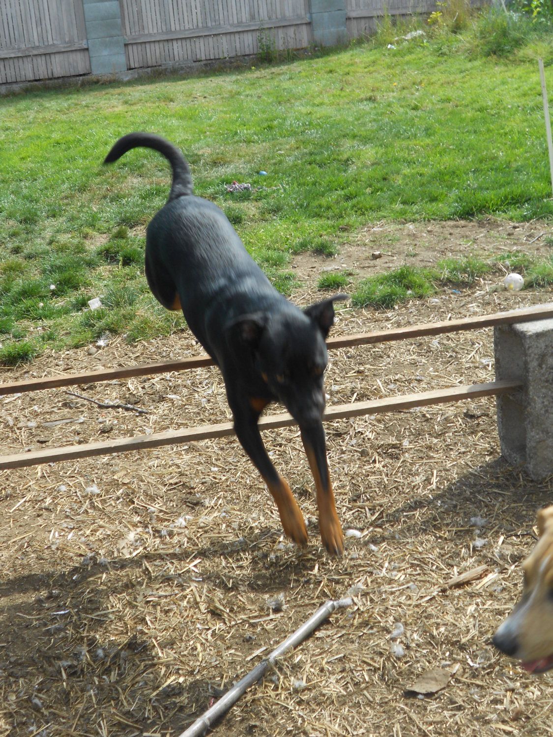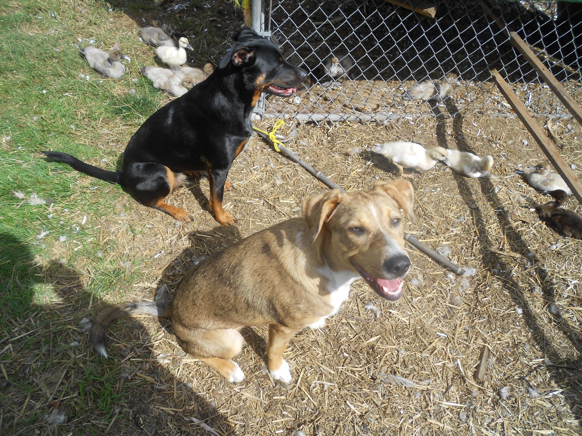 The really good news is his reaction to the goats, ducks and chickens - NO reaction! The Airedale on the other hand would eat any and all of them if given the chance.