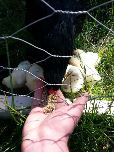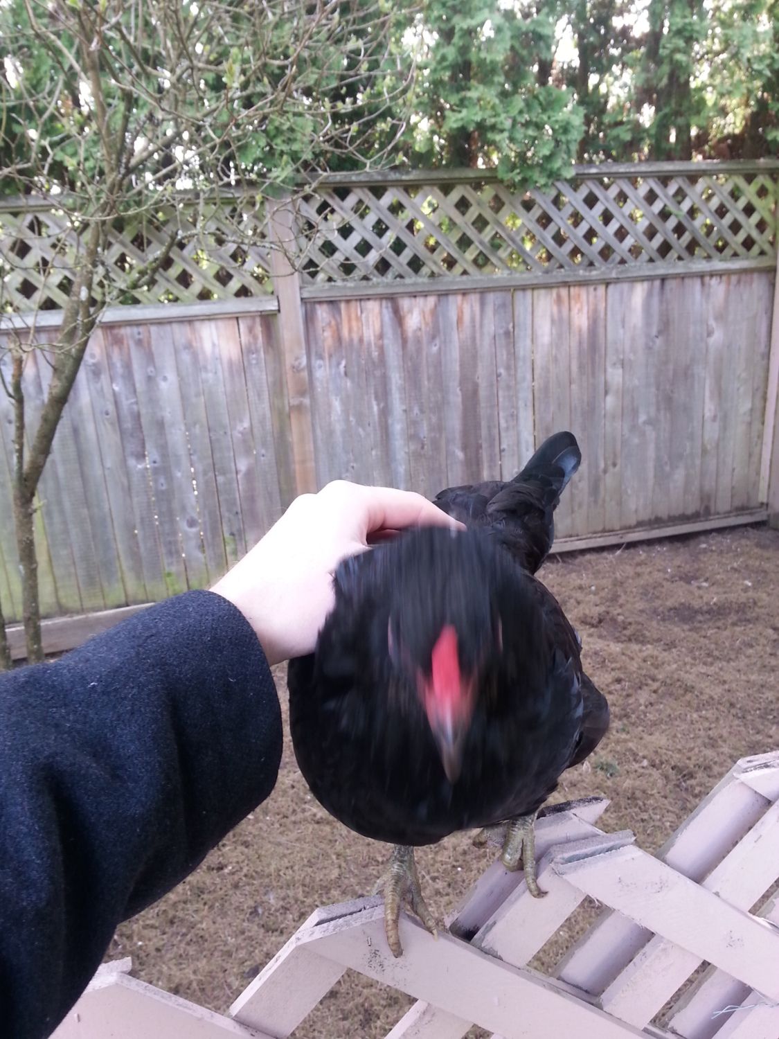 I imagine she imprinted on me in the first few days after her hatch - she was an incubator baby Cinco de Mayo 2013.