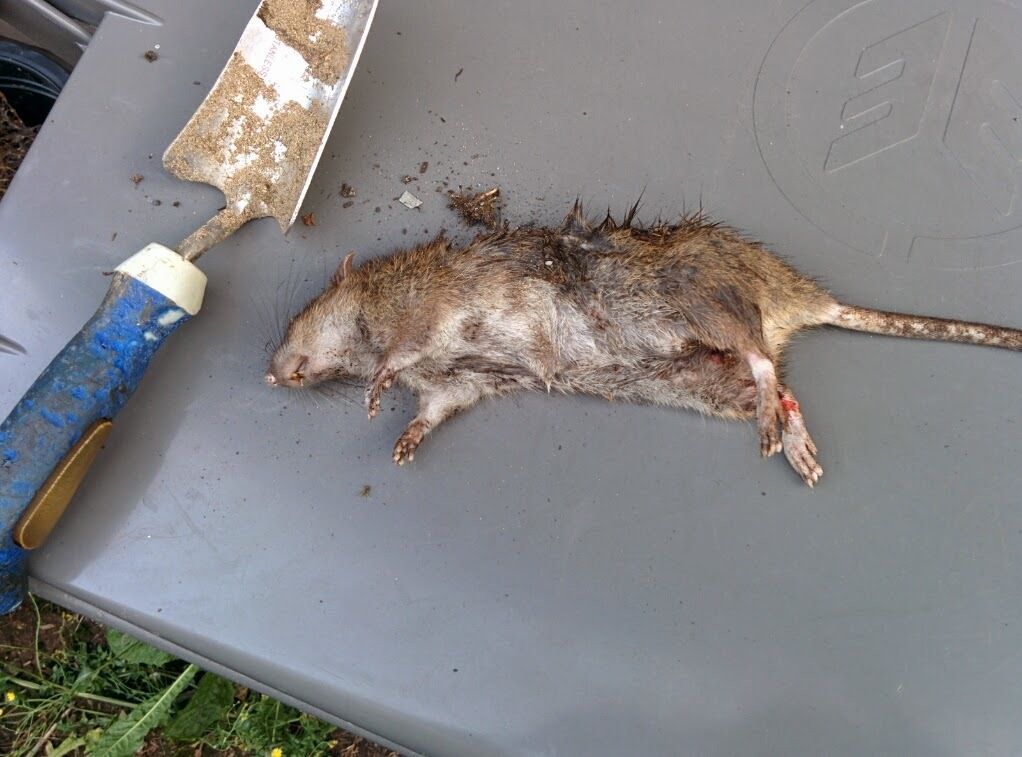 I had something burrowing inside my duck pen and haven't been able to figure it out for 2 months. Finally flooded the burrow sufficiently and one of the dogs caught this big fat rat!