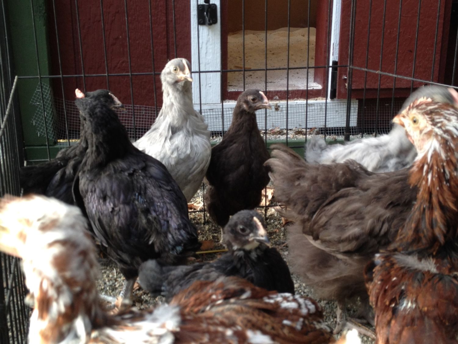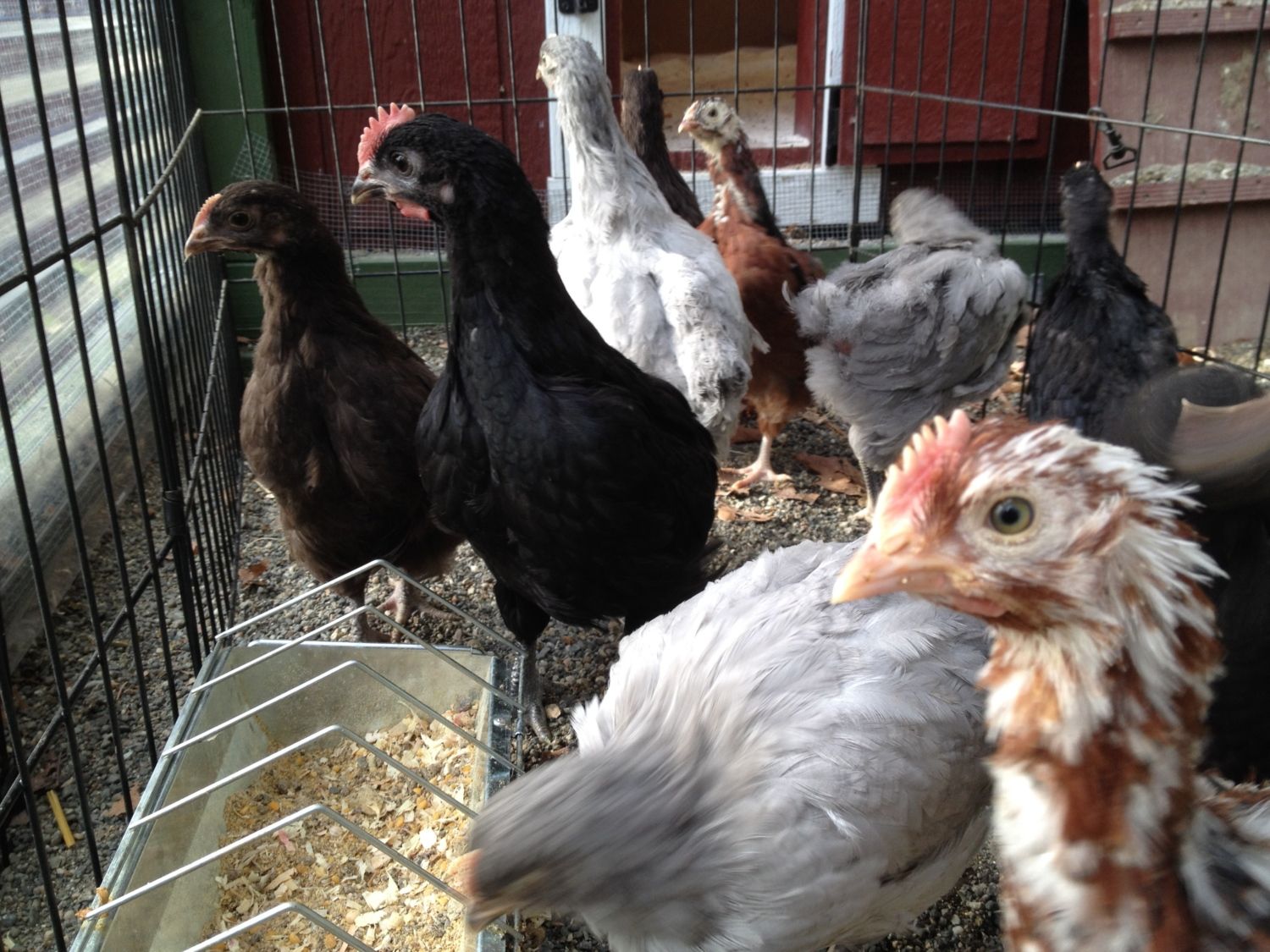 My Orp chicks are 8wks and I moved them to the big girl coop this week. They spend their nights in the coop in the wardrobe box/brooder, and their days in the ex-pen in the run. So far so good.