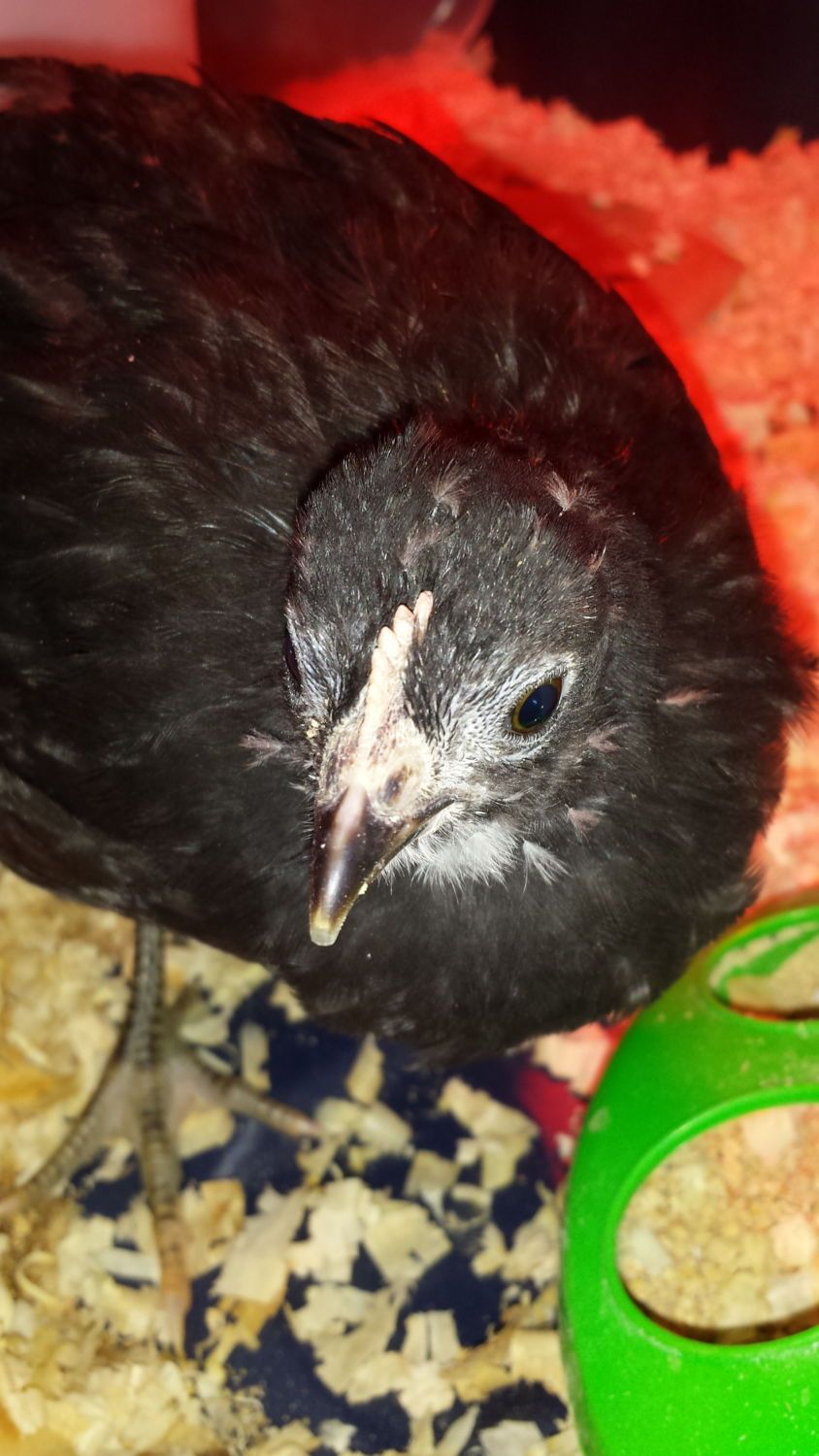 He's the black one with this white feather tipping and I have a feeling he's going to be super striking. I really like him but I've got 12 chicks and only want to keep a rooster if my Silkie or one of my Semana's turns out to be a rooster. There is a small small chance he could be a pullet but red comb and wattle already and none on his sissy.
