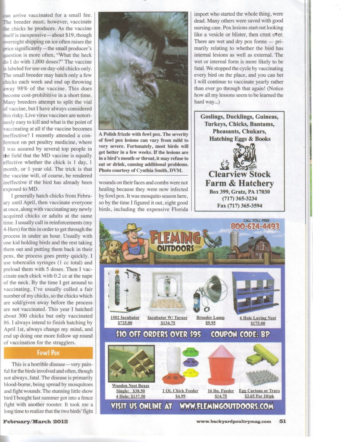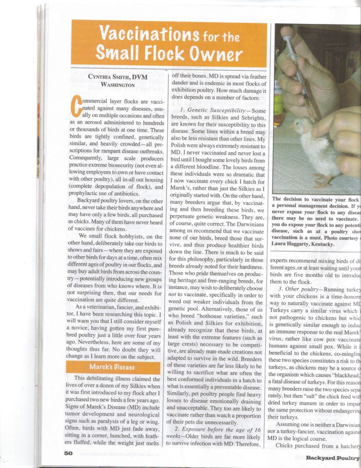 Here is the article Cynthia wrote for BYPoultry...Cynthis is a vet & shows sometimes & used to be on this thread quite a bit.