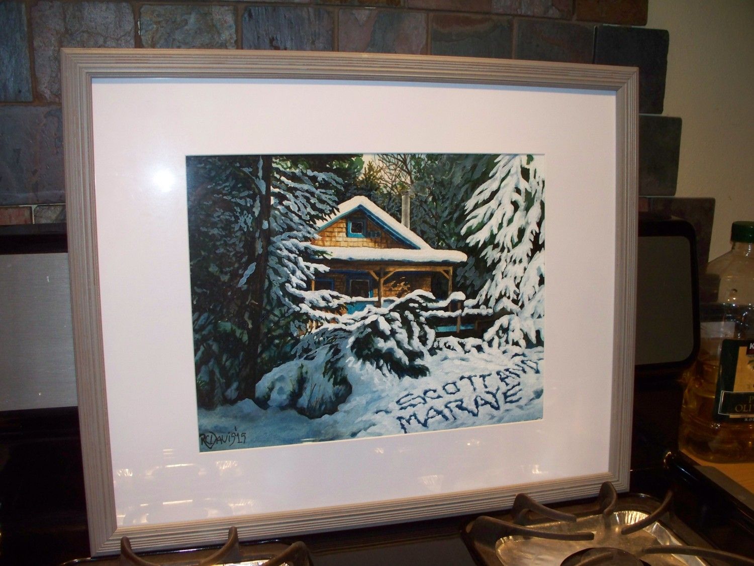 So I am smoking the rest of the fish, and finished a painting. The fish basted with Chicken Rustler's Honey, Molasses, sea salt & pepper....it is so yummy ! The painting is for my brother, and his wife, who just bought the family cabin from our parents, and they are fixing it up really cute...so I made this.... Cute, huh ? I hope they like it ! :P