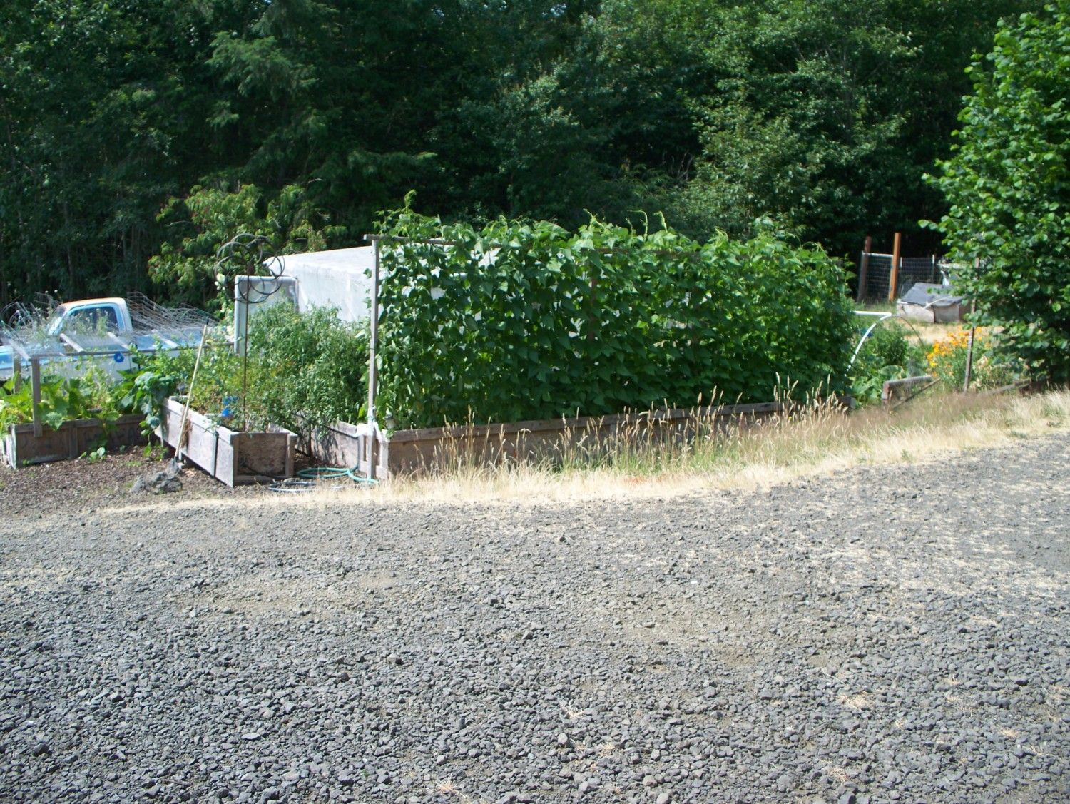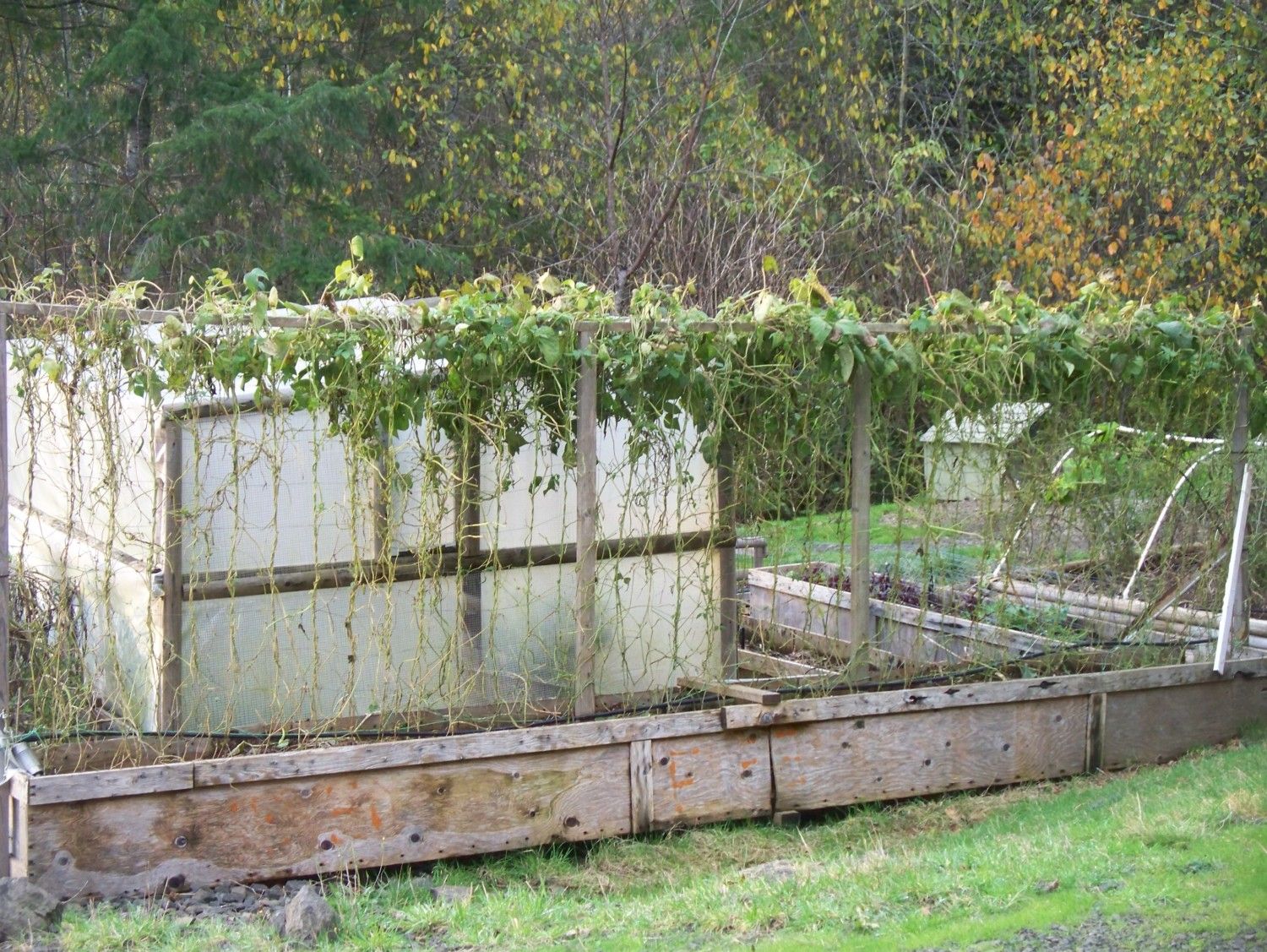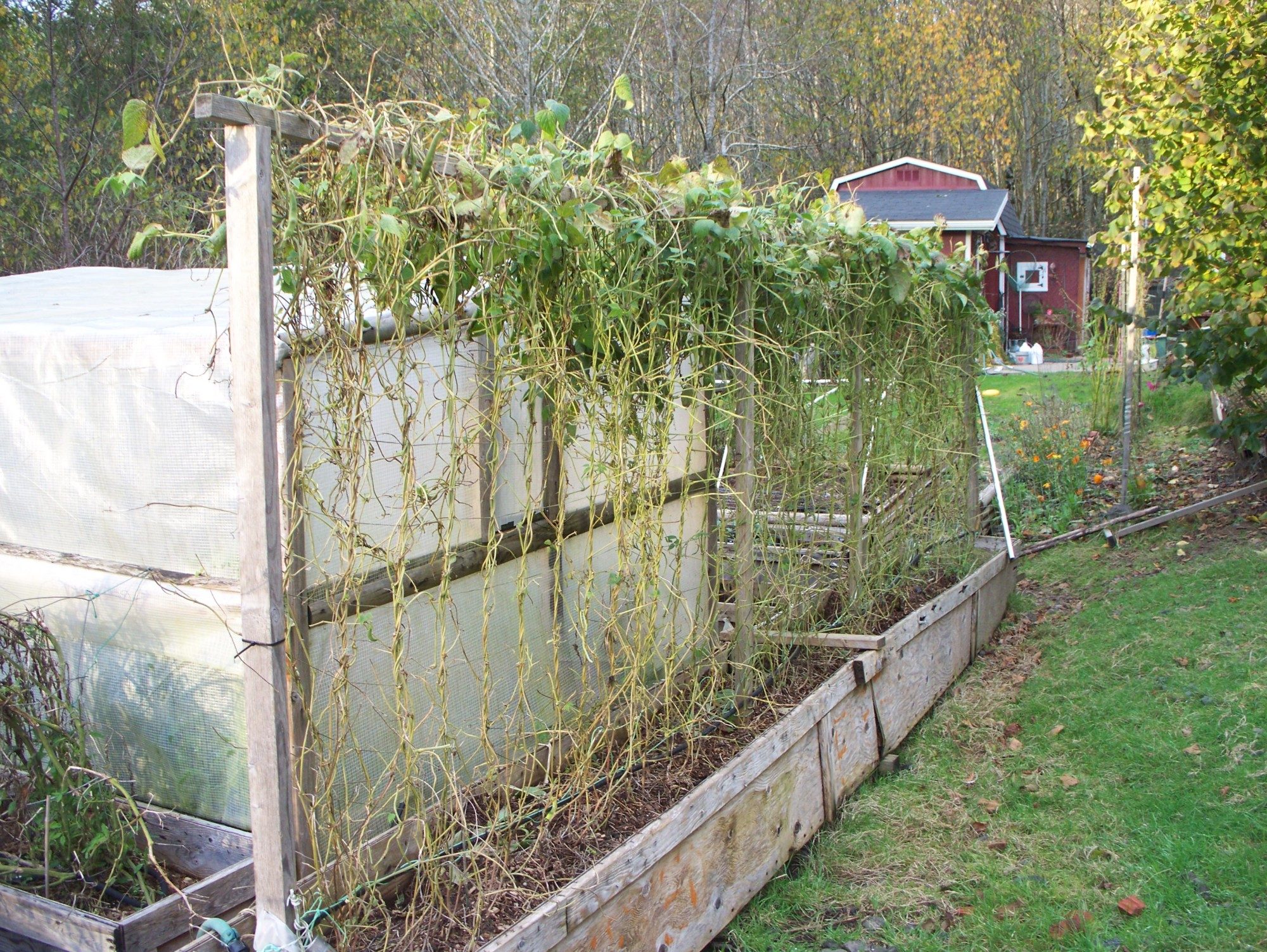 We picked some 40# of string beans off these vines this summer, then the deer decided it was their turn.and since DH was deer hunting, I 'let' them come closer to the garden. That may have been a big mistake !