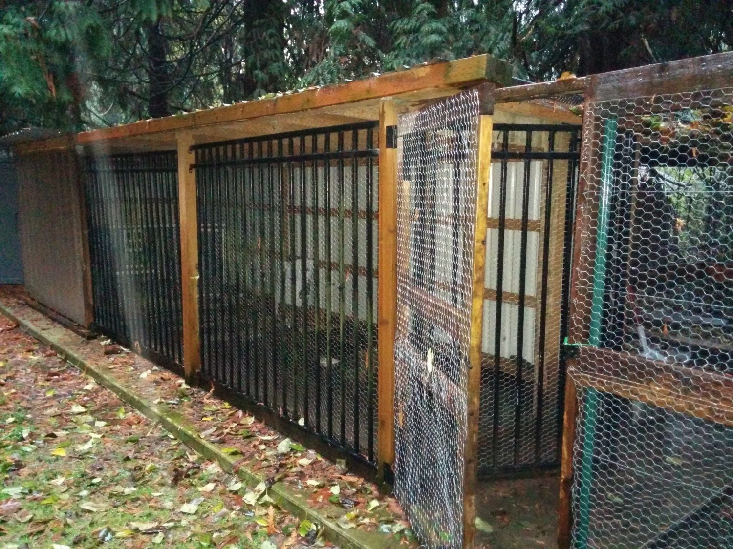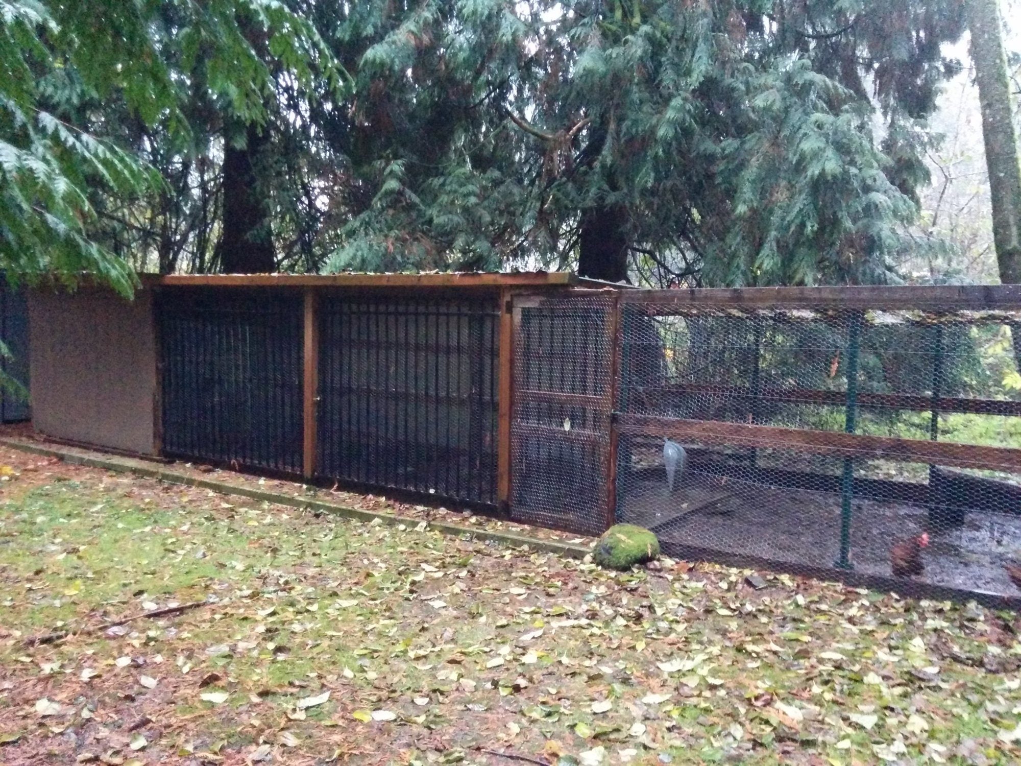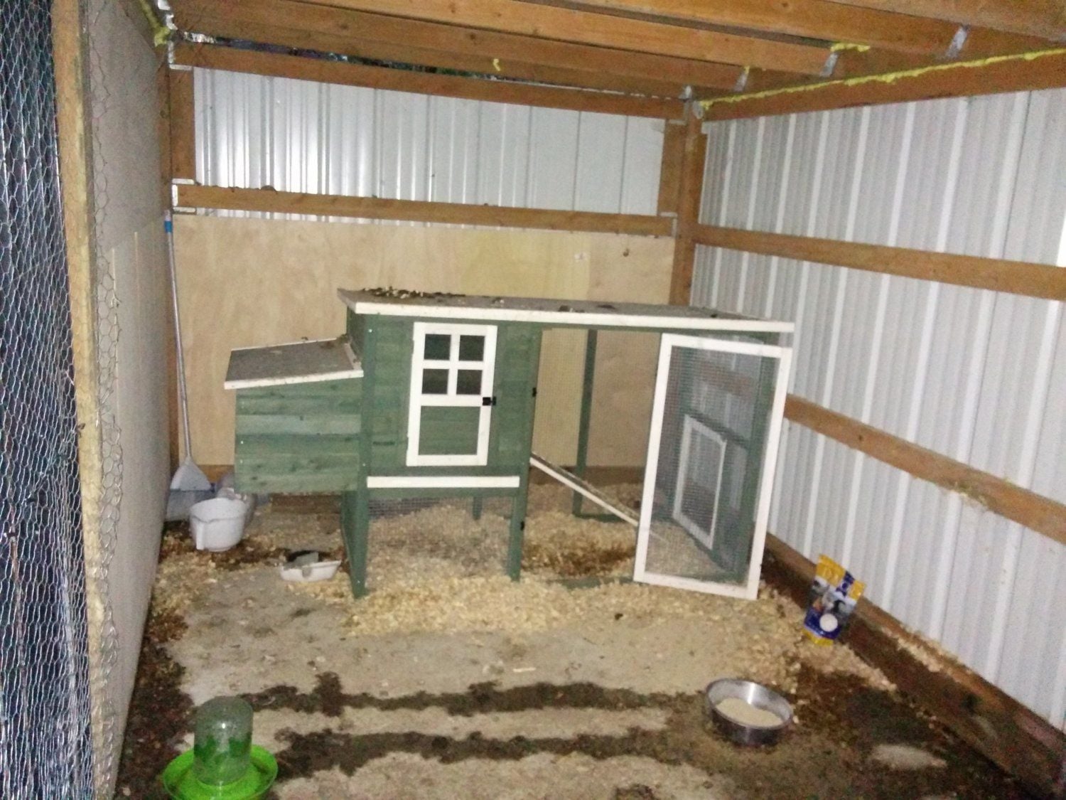 I have two Rhode Island Reds, 8 months old. Our home had a great dog run that we converted into a chicken run this summer. They have a large area about 30' x 10' with a concrete-floor, that is half enclosed with sheet metal, and half with strong wire bars about 3 inches apart, covered with chicken wire. There is also a connected 11'x15' run with dirt floor--all chicken mesh (not the strongest, I know. Hope to switch to wire mesh at some point)