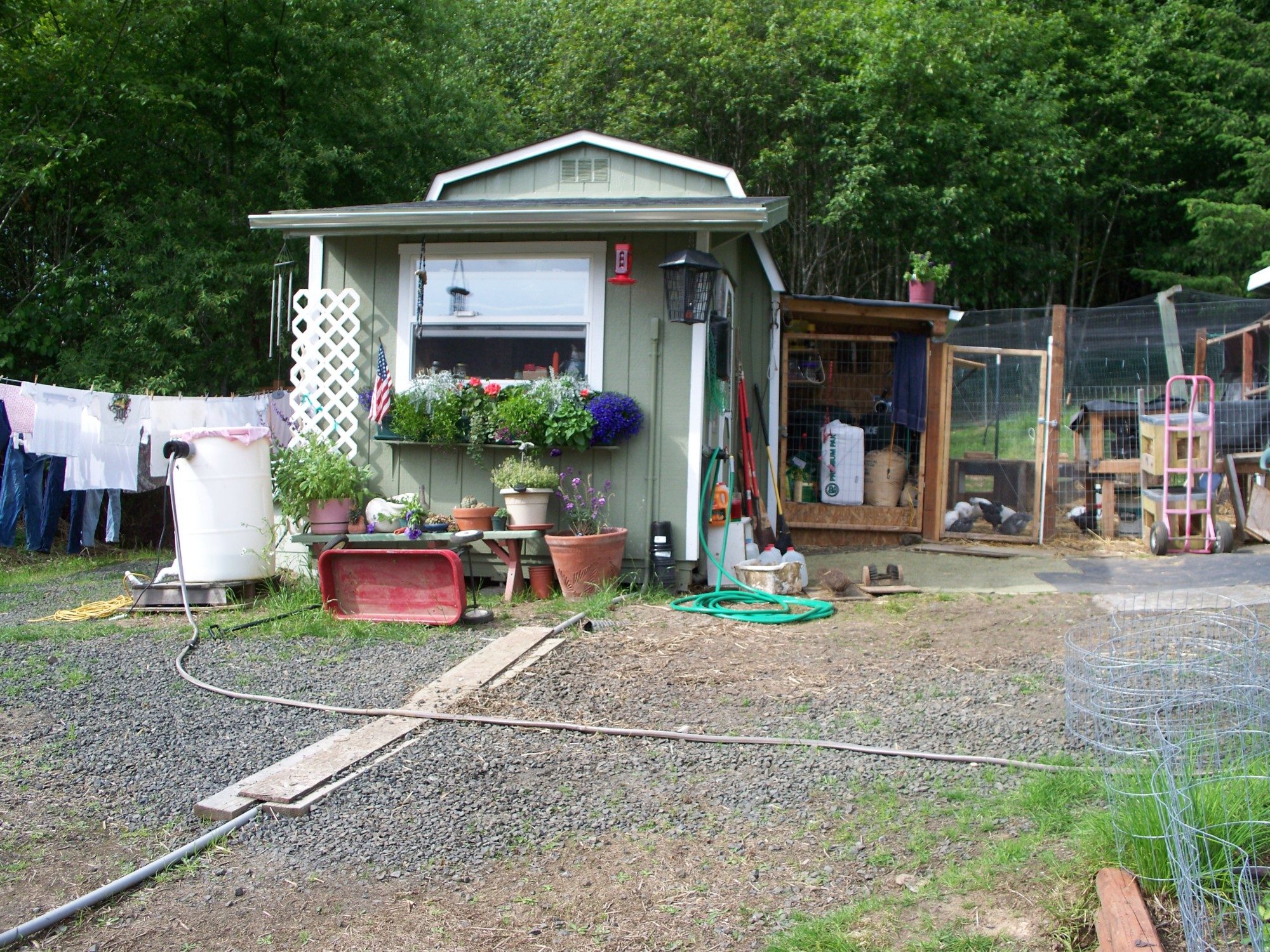So basically we went to CA and took care of grandma, when she died we loaded up the birds & bunnies and came here, bare land.