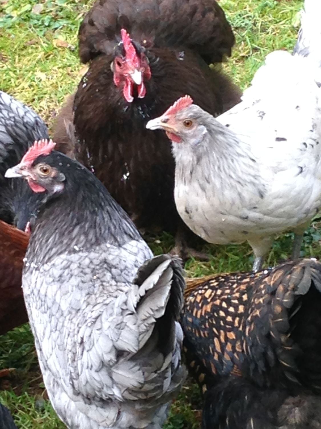 Here's a pic that shows the Andalusians (blue and splash) that I took last week when they were eating yogurt.