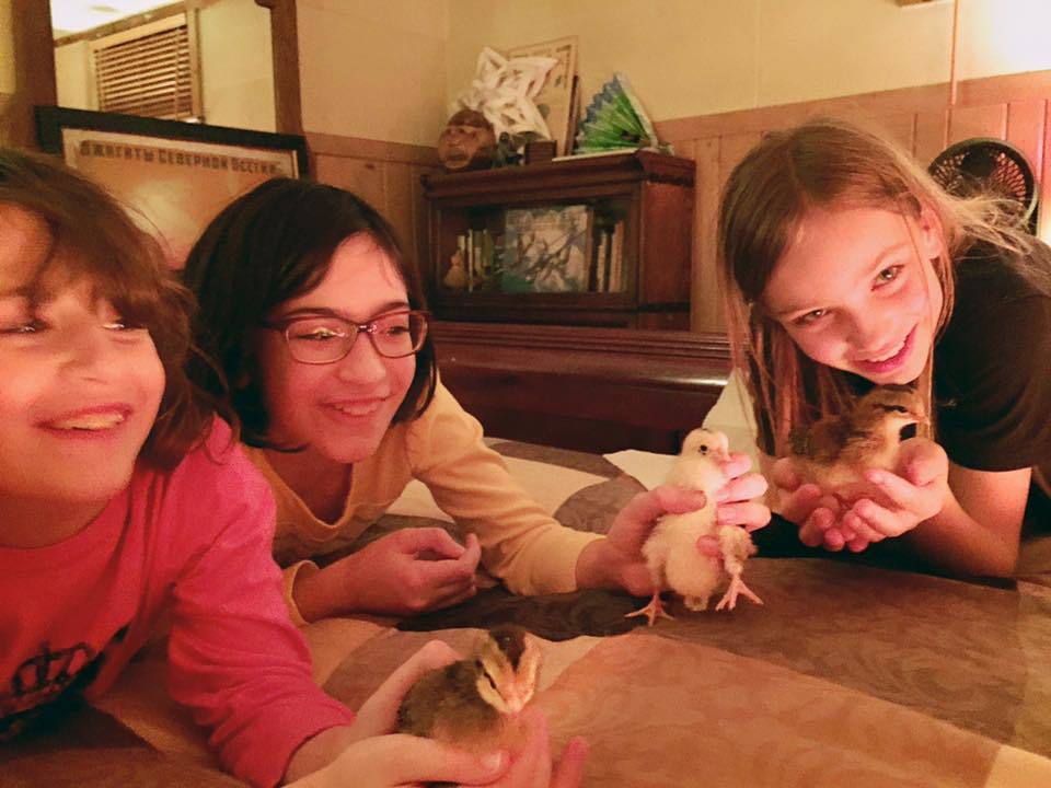I am actually recovering from a very drastic breast reduction I had 3 weeks ago (still healing but my back feels much better now!), and my husband had all 4 wisdom teeth out on Wednesday, plus he's going out of town for 11 days later this month. Raising the chicks just seemed like too much hassle right now, so a friend of mine with two young daughters offered to raise them up for us for the first month, yay! Less work for us, Easter treat for them!