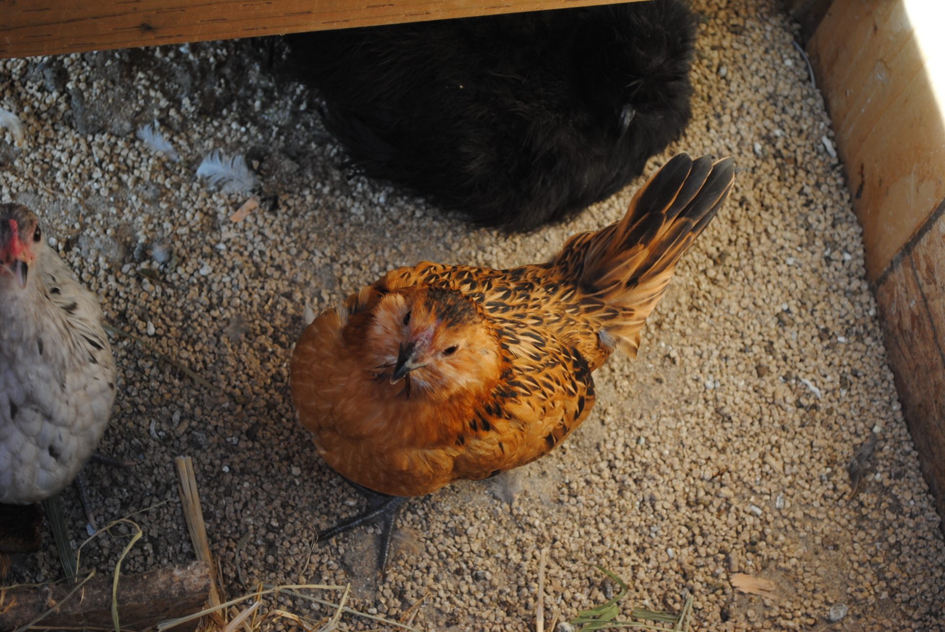 No prob, just thought I would throw it out there for ya. I had her, her twin, a white bantom (not the same breed) and 5 silkies in a tractor coop that something dug under and got every one but this little girl. I love her to death, when ever I come out she runs up to me and jumps up into my hand and just sits with me. Now you would think this was not that neat or impressive cause a lot of you hold your girls a lot when they are chicks to make them this way, but this (as well as the others she was housed with) had NEVER been held! She is just naturally sweet I guess. The only reason I am trying to find her a home is because I do not have any other chickens this small, I mean she is tiny.