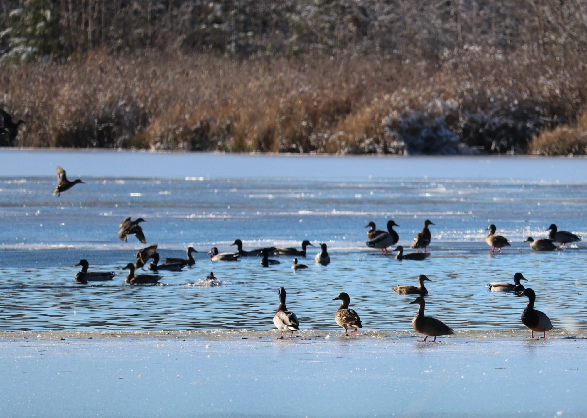 I broke through the ice and fell in the marsh up to my thighs. I thought it was solid ground since there was grass. The dog rushed over and let me use her as bracing to get out of the mud suction