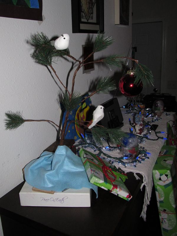 Hey no offense but that is a very nice Charlie Brown Christmas tree. I am not making fun of or laughing at you I am laughing WITH you.. That is better than the Christmas tree we won't have. I just don't even have the spirit to do any Christmas decorating. Kind of sucks as I have several big inflatables and lights just being stored.