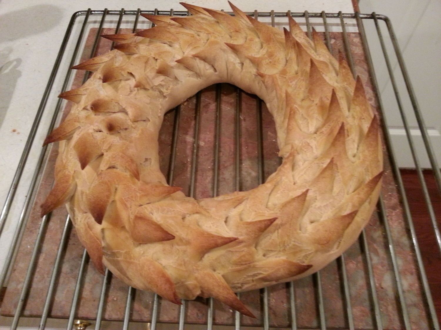 This is my sourdough holiday wreath - or at least, my first one, just out of the oven. This was a test, so after we taste it, I will know better what to change.I think some seeds on top would be nice. Hopefully, I will have one good enough for our gift on Christmas eve to our dinner hosts. Also adding some truffle oil and some homemade duck and rabbit pate.