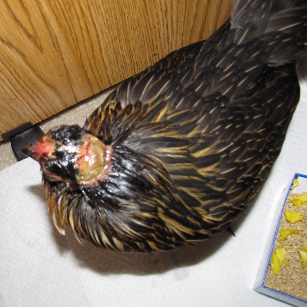 What a strong girl! Can you tell how bad the eye injury is? That is, is this blindness temporary?Frodo is improving! She ate an egg and a half and some scratch/sunflower seeds. She also drank a lot of water and is starting to fly around. However - from what I can see she is blind in one eye and when she tries to eat she often misses (way off). I got some butterfly bandages to see if I could close it, didn't work.I'm honestly amazed, she is getting stronger and stronger. She prefers my lap. Good thing I have a week off!The wound is gaping at the back of the neck. A grey film is forming over the top. When she moves her head, the grey film stays in place and the tissue beneath moves. I don't know that we can attach it - there is just nothing to attach it to. Please let me know if you can suggest anything to close the wound. See how it was just under her scalp? There is about 1/2 strip missing.![]()