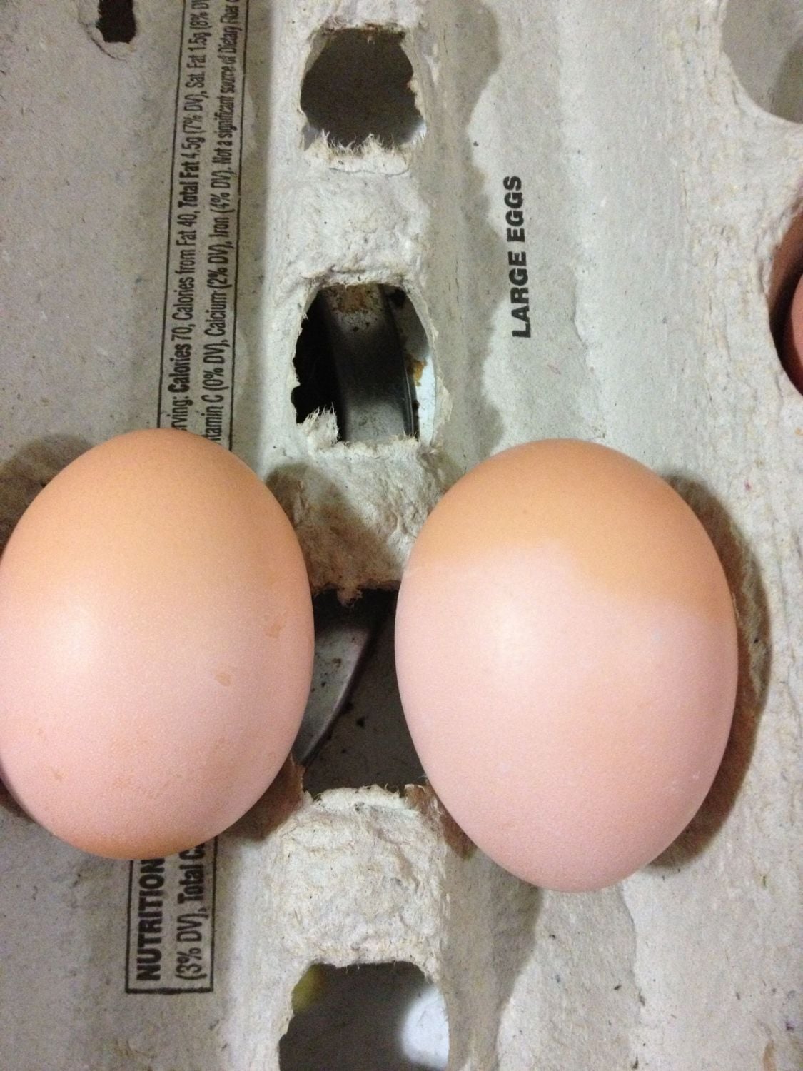 Why do the eggs seem to change color when put in the carton in the fridge? The dark part is the top where the egg IS NOT touching the egg carton.....