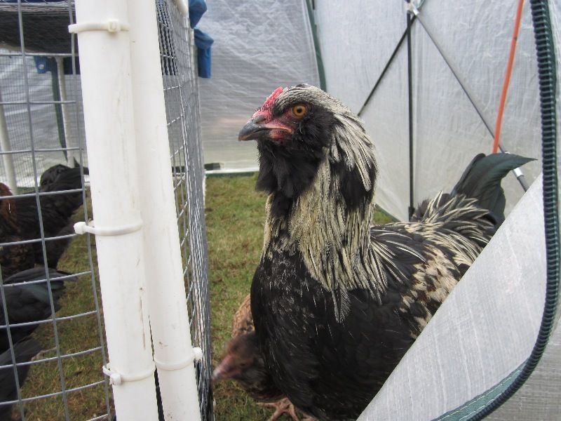 Blackie teaching "his" chicks how to scratch. He spends hours every day peeping at them and teaching them how to scratch. It is so funny!