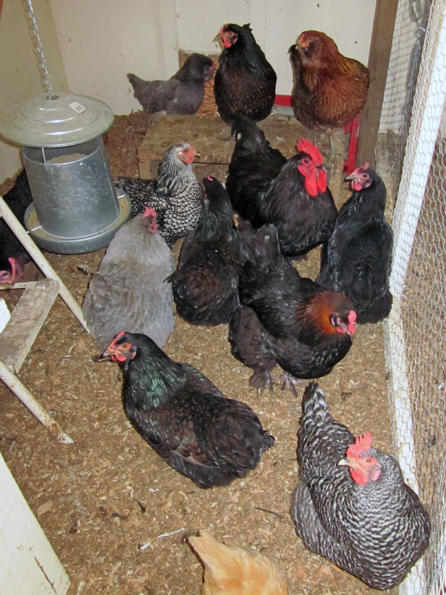 They all saw me head to the coop, so they ran in from all over the yard hoping I'd give them some goodies!